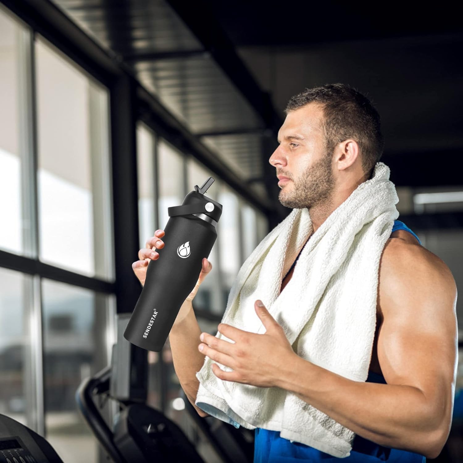 - 【THREE DIFFERENT DRINKING WAYS】 SENDESTAR 40oz slim water bottle comes with Three different BPA-free lids can be switched at any time. The new patent straw lid have a dust proof cover ,it keeps the spout cleaning and covered after use, the straw lid is suitable for cycling and road trip. a spout lid with a twist-on flip cap suitable for sipping hot coffee. the flex cap is perfect for the beach, camping and hiking.