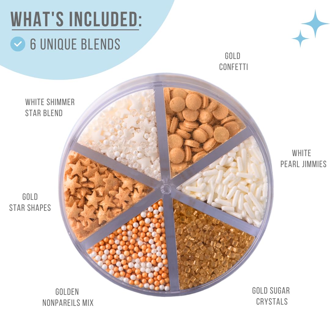 Sweets Indeed Sprinkles 6 Cell Edible Sprinkle Mix Jimmies Perfect for Cake Decorations Baking Ice Cream Cookies Cupcake Topper (Gold)