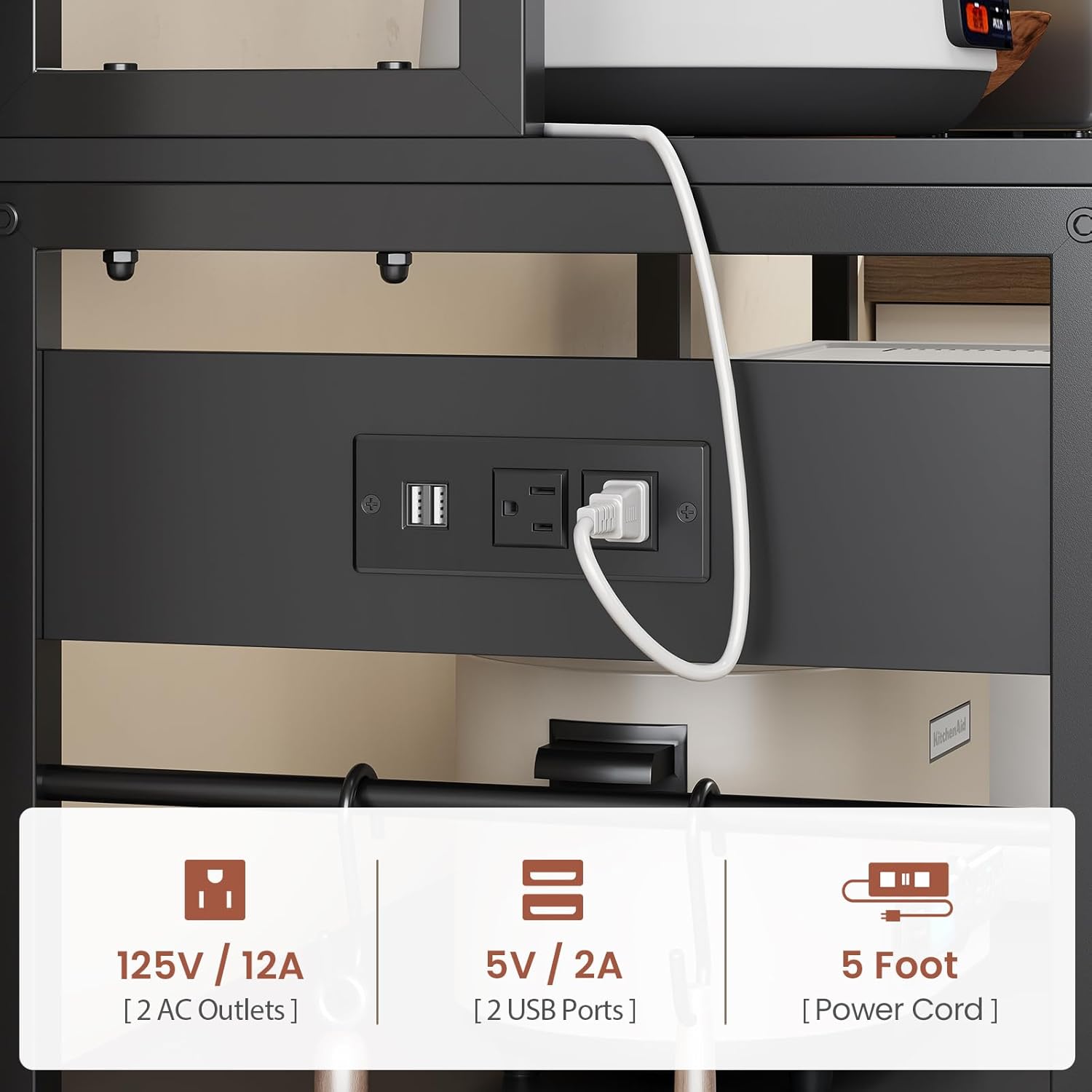 - 【Bakers Rack with Power Outlets】This bakers rack is equipped with 2 AC outlets, 2 USB charging ports to provide power for up to 4 devices simultaneously. Our baker rack comes with the RGB LED light strip which can not only increase the atmosphere of the kitchen but also brighten the work area so that you can operate at night.