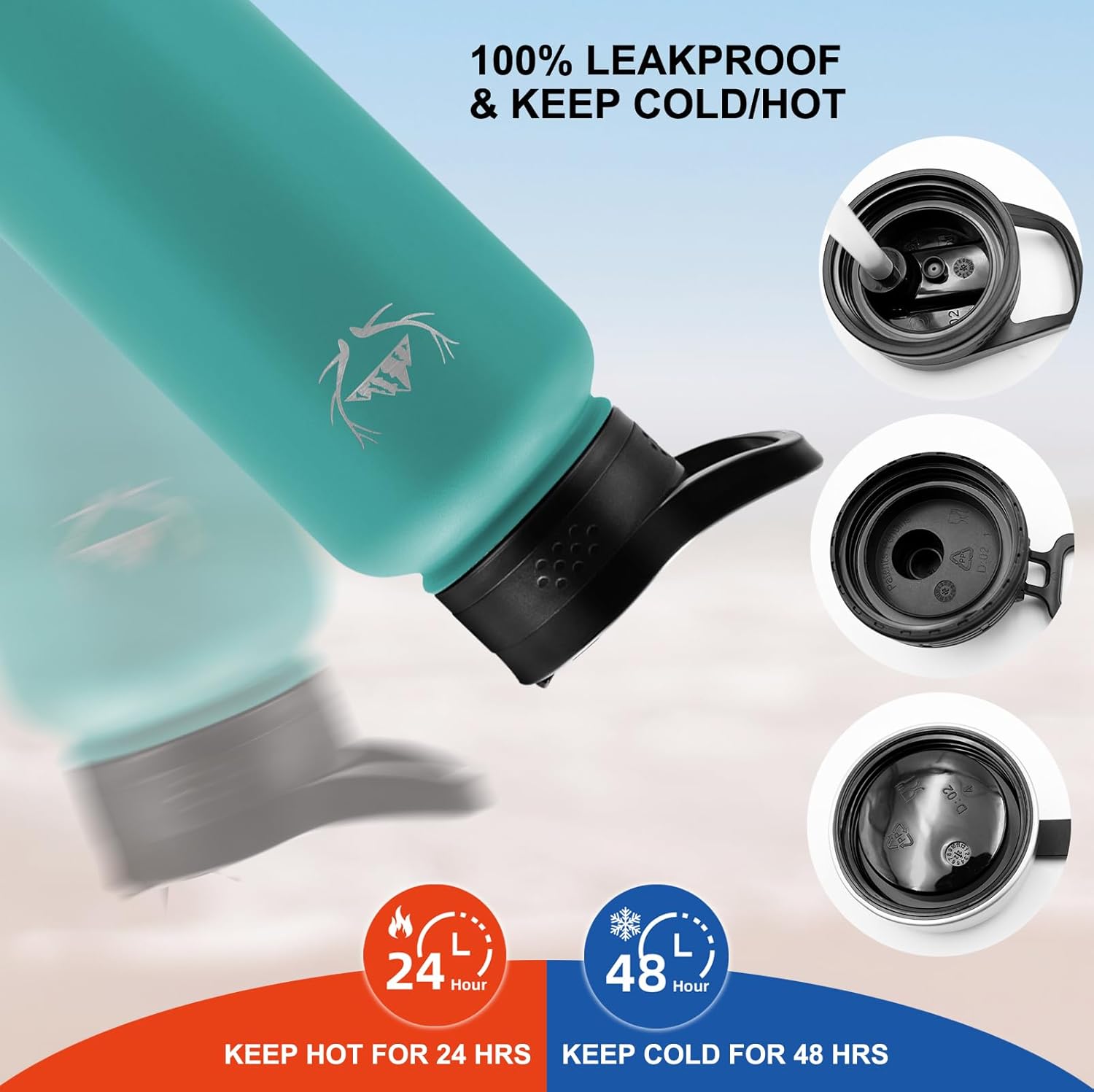 - 【DOUBLE-WALL VACUUM INSULATION】 - We insulated water bottles adopt double-layer insulation wall design and vacuum sealing. This means you can enjoy your favorite hot and cold drinks for a long time, no matter what seasons you're in. It can keep hot drinks hot for 24 hours and cold drinks cold for 48 hours! Advanced technology prevents heat transfer to outer wall, protects your hands from the temperature of beverage