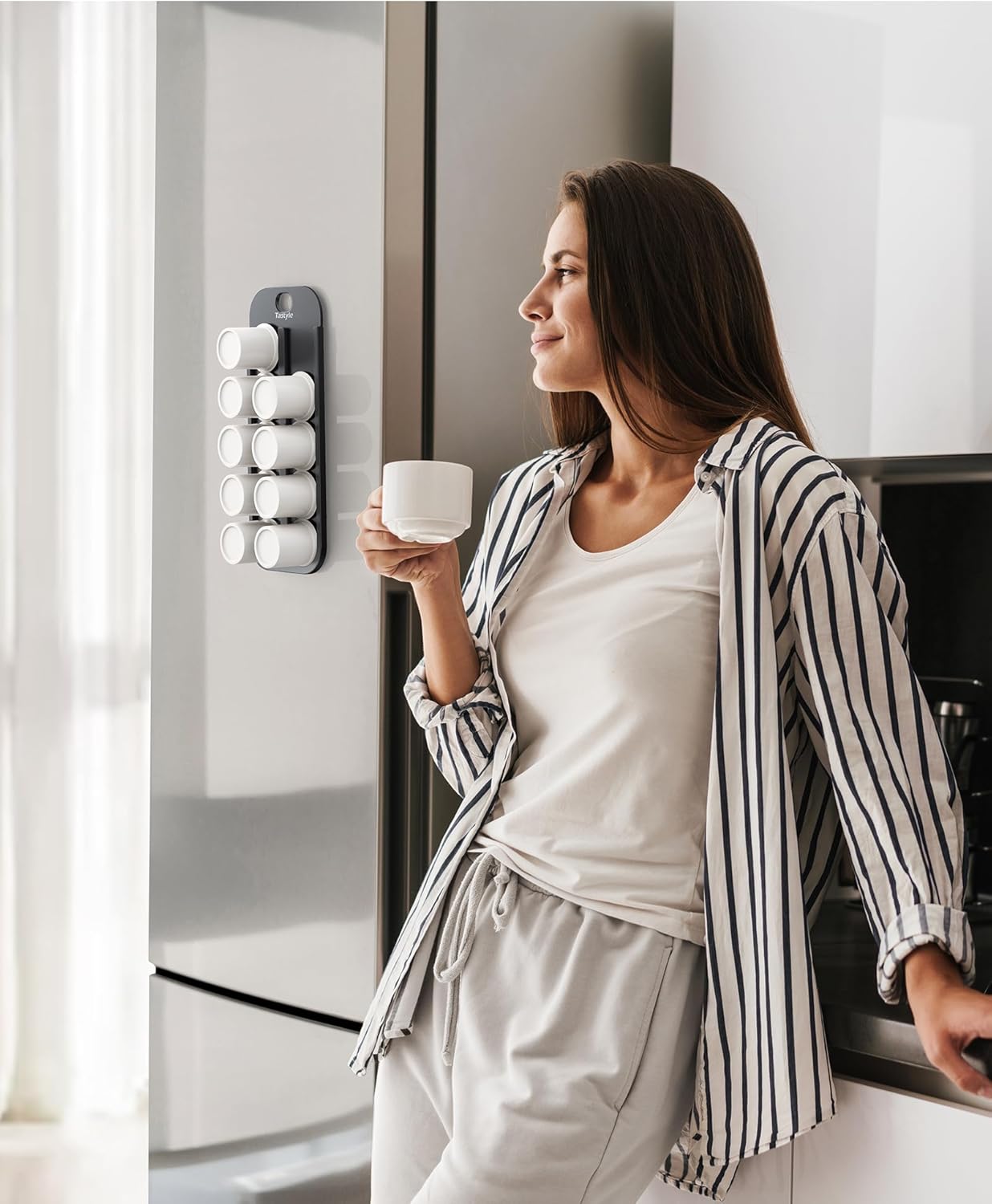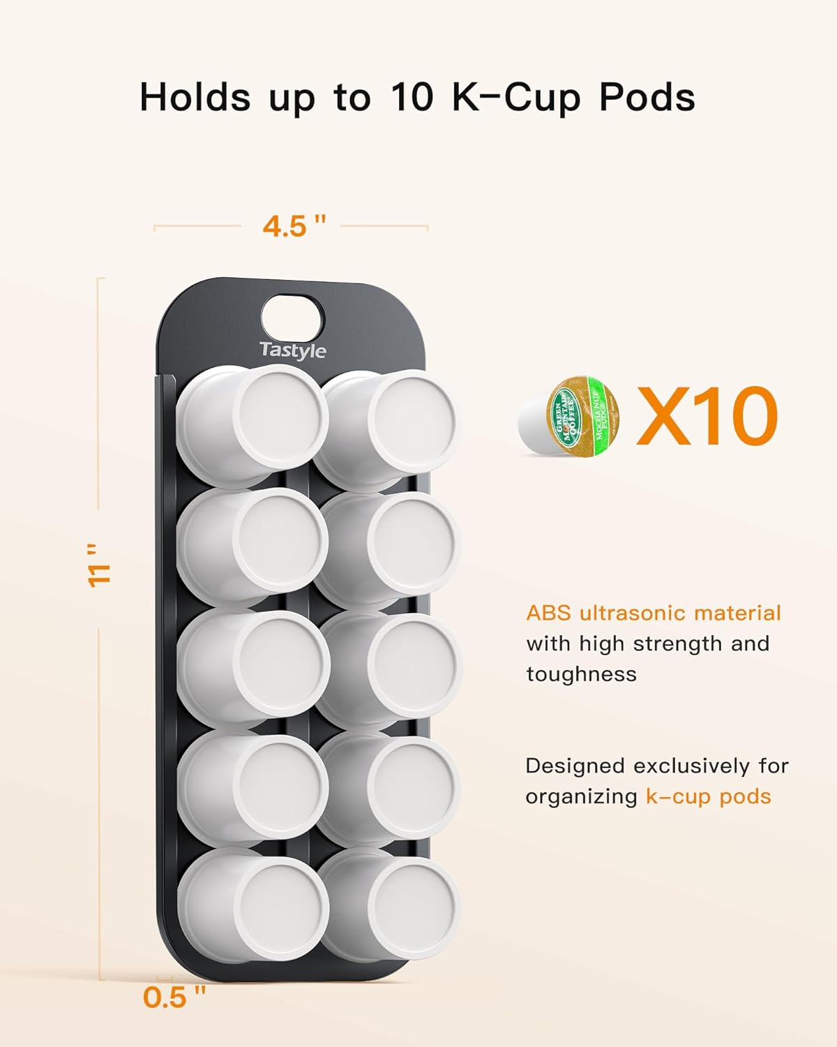 - Easy to Use: Measuring 11" x 4.5"; it can be mounted on the refrigerator door, easily mounting and removing. Efficiently organize and store coffee pods, allowing pods to slide in and out easily.