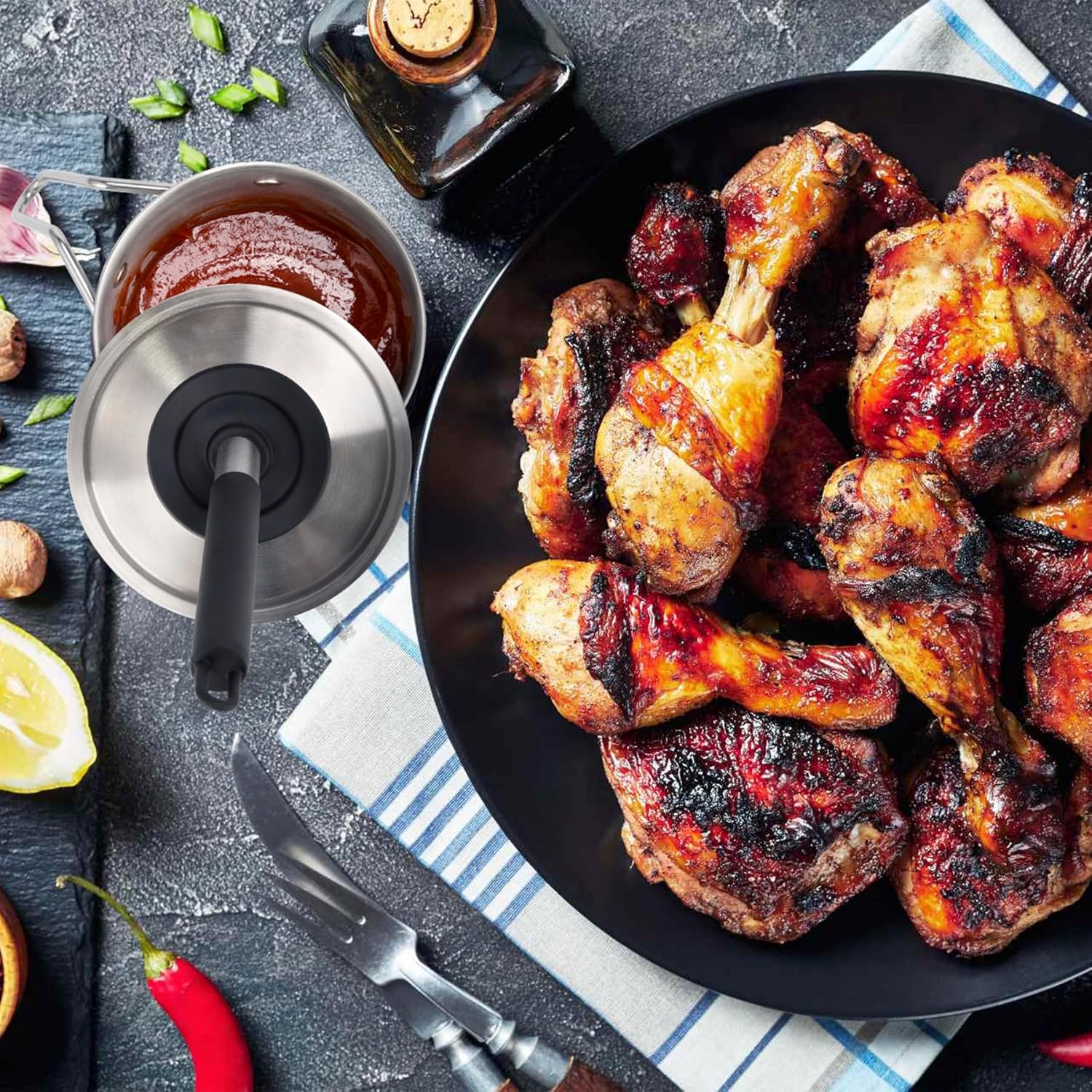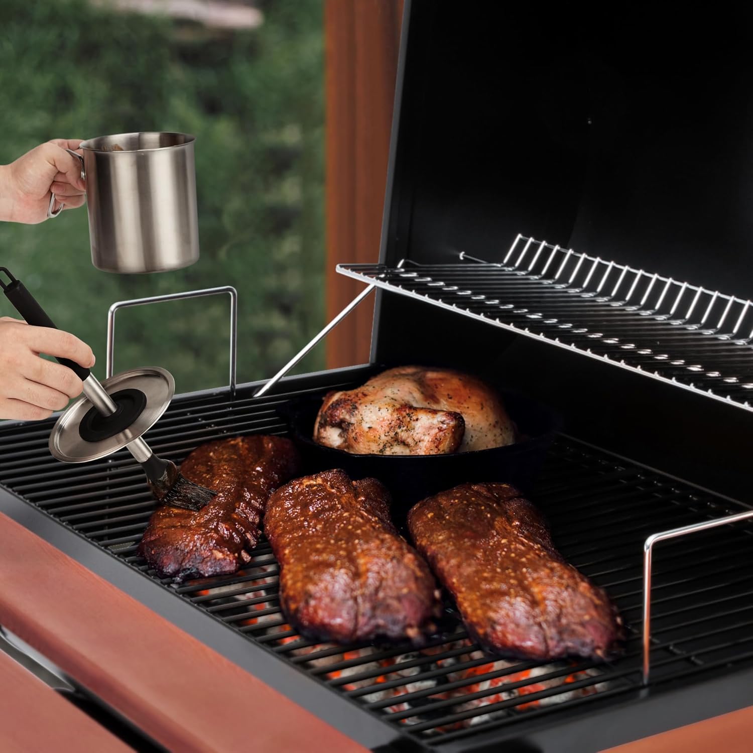 - Great gift for a grill master: Our sauce pot and basting brush set is made of food-grade 304 stainless steel and BPA-free silicone brush head, built to last. This grill/smoker accessories are the perfect gift for those who love outdoor grilling. Enjoy a seamless outdoor grilling experience with this cleverly designed essential.This is the best basting pot to have outside for when you use sauces on meat, make your outdoor cooking experiences more enjoyable.