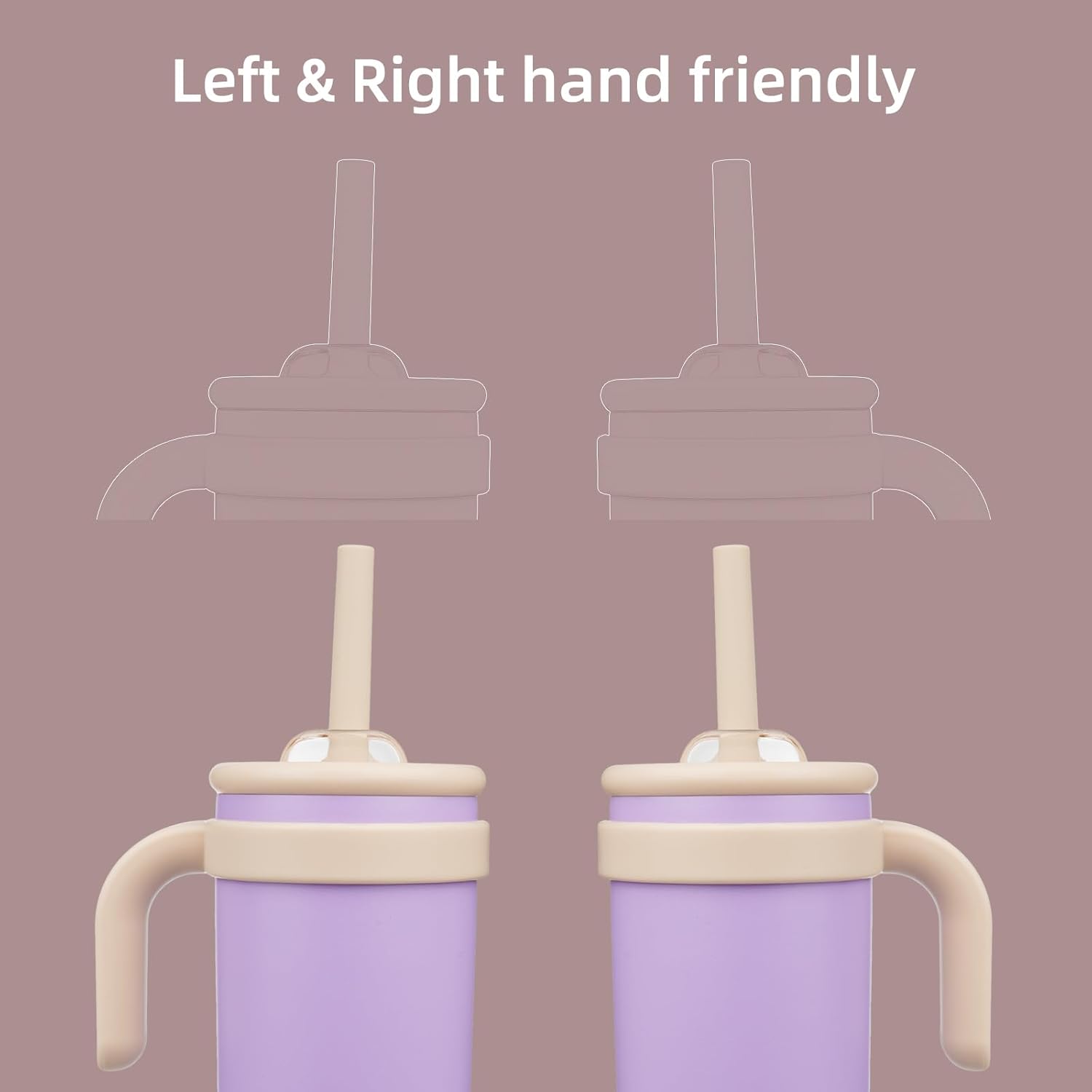 18 oz Tumbler with Side Handle, Insulated Water Bottle with Straw and 2 in 1 Lid, Stainless Steel Cup Travel Coffee Mug for Sports Office Gym,Purple