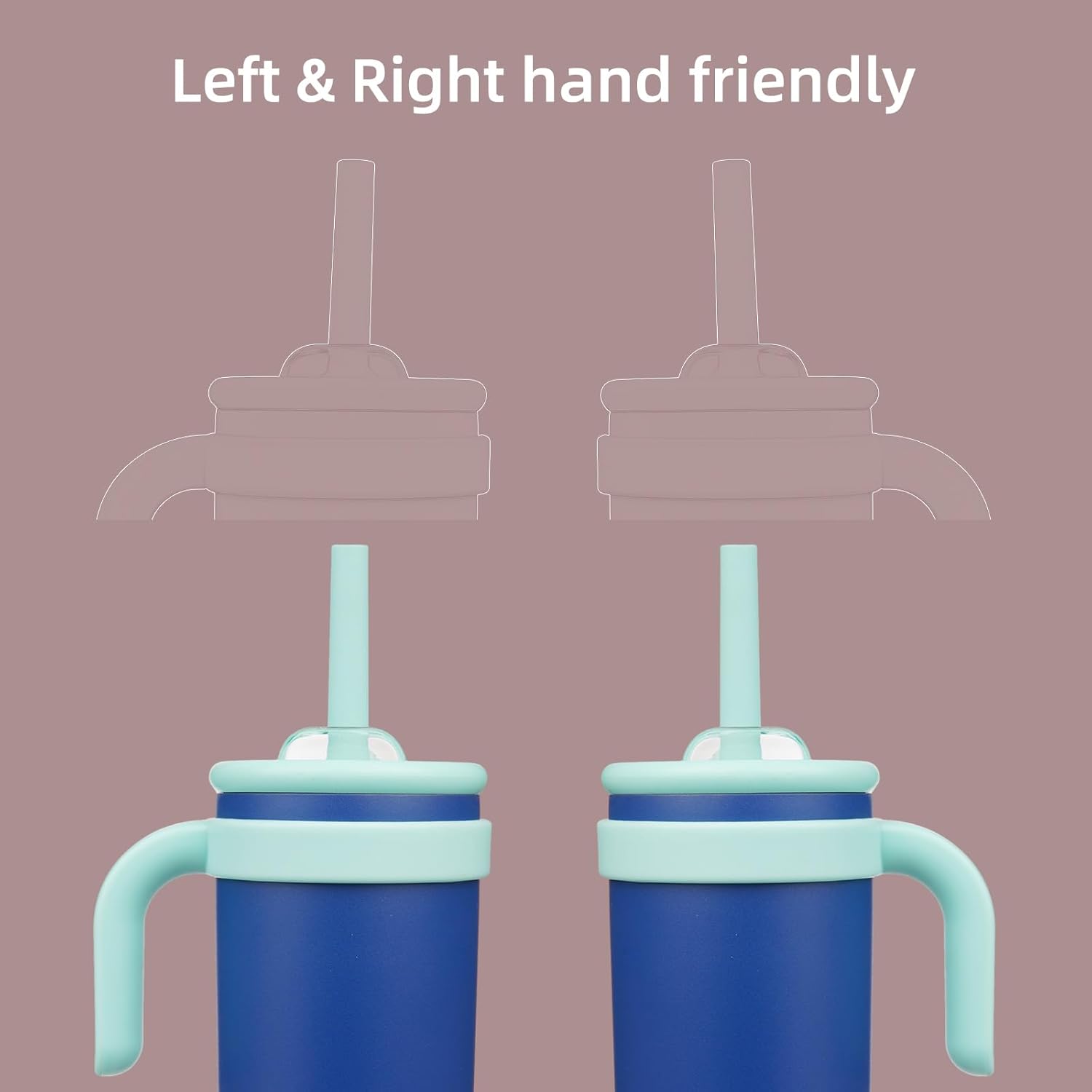 14 oz Tumbler with Side Handle, Insulated Water Bottle with Straw and 2 in 1 Lid, Stainless Steel Cup Travel Coffee Mug for Sports Office Gym,Dark Blue