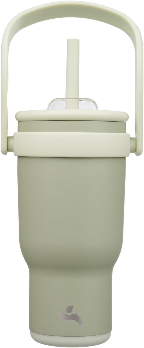 30 oz Tumbler with Side Handle, Insulated Water Bottle with Straw and 2 in 1 Lid, Stainless Steel Cup Travel Coffee Mug for Sports Office Gym,Camp Green
