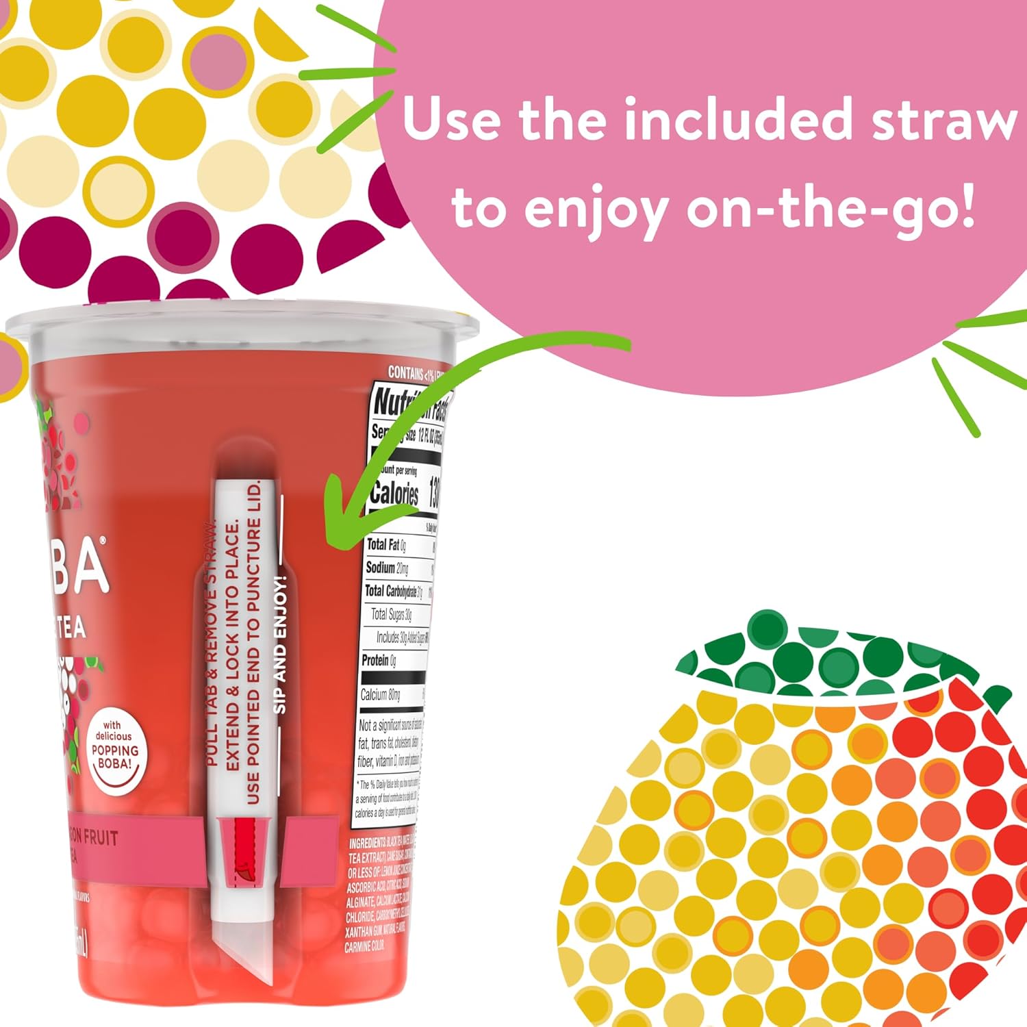Joyba Bubble Tea Variety Pack, Mango Passion Fruit Green Tea & Raspberry Dragonfruit Black Tea with Popping Boba, 6 Pack, 12 fl. oz. Cups