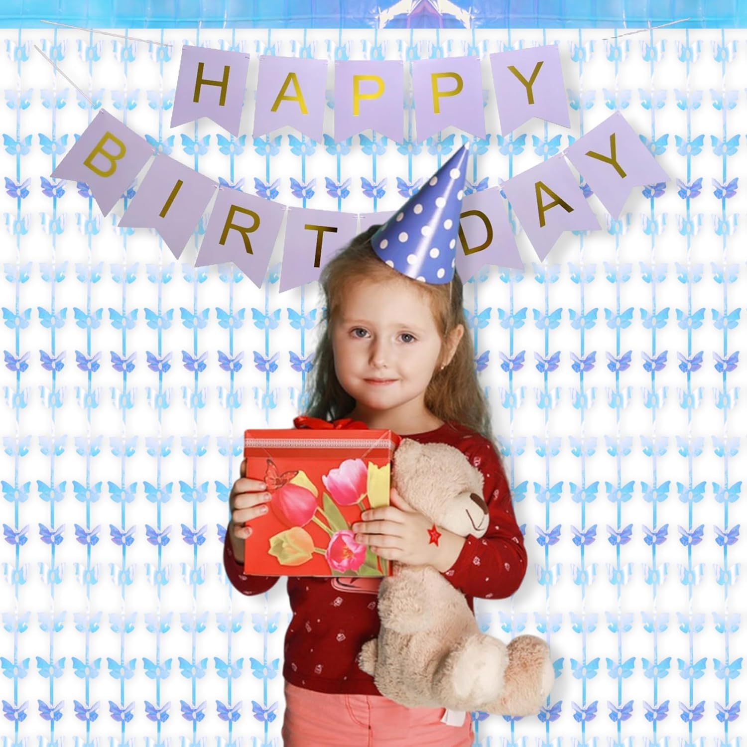 BRAVESHINE Iridescent Hanging Butterfly Foil Fringe Curtain - 2 Pack 3.2x6.6ft Holographic Party Streamers Backdrop for Baby/Bridal Shower/Mermaid/Frozen/Fairy/Princess/Butterfly Birthdays Decorations