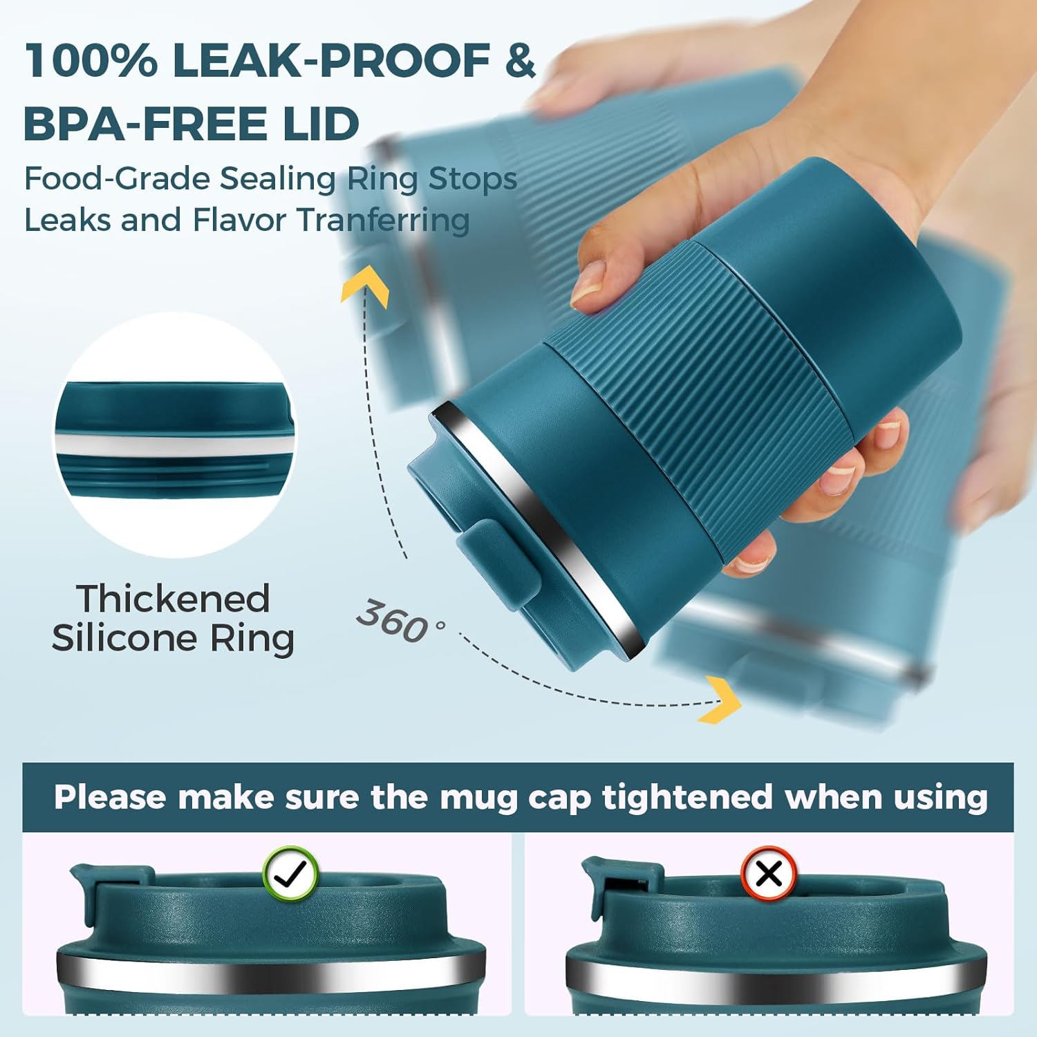 - 【Double Wall Insulation Technology】Volhoply Travel Coffee mugs are made with double-wall vacuum insulation technology,which can keep your drinks warm for more than 6 hours and cold for more than 12 hours,both indoors and outdoors.You can enjoy your favorite drinks for a long time,keeping every sip fresh until the last drop!