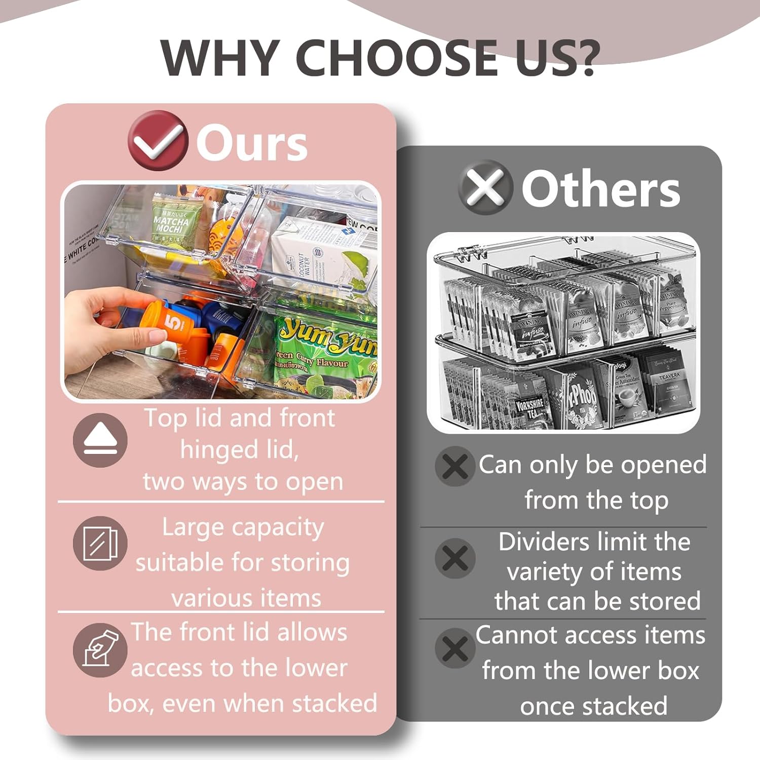 - Front Access Lid: Each box has a hinged front lid for easy access to items, even when stacked. No need to unstack boxes to reach what you need from the lower box.