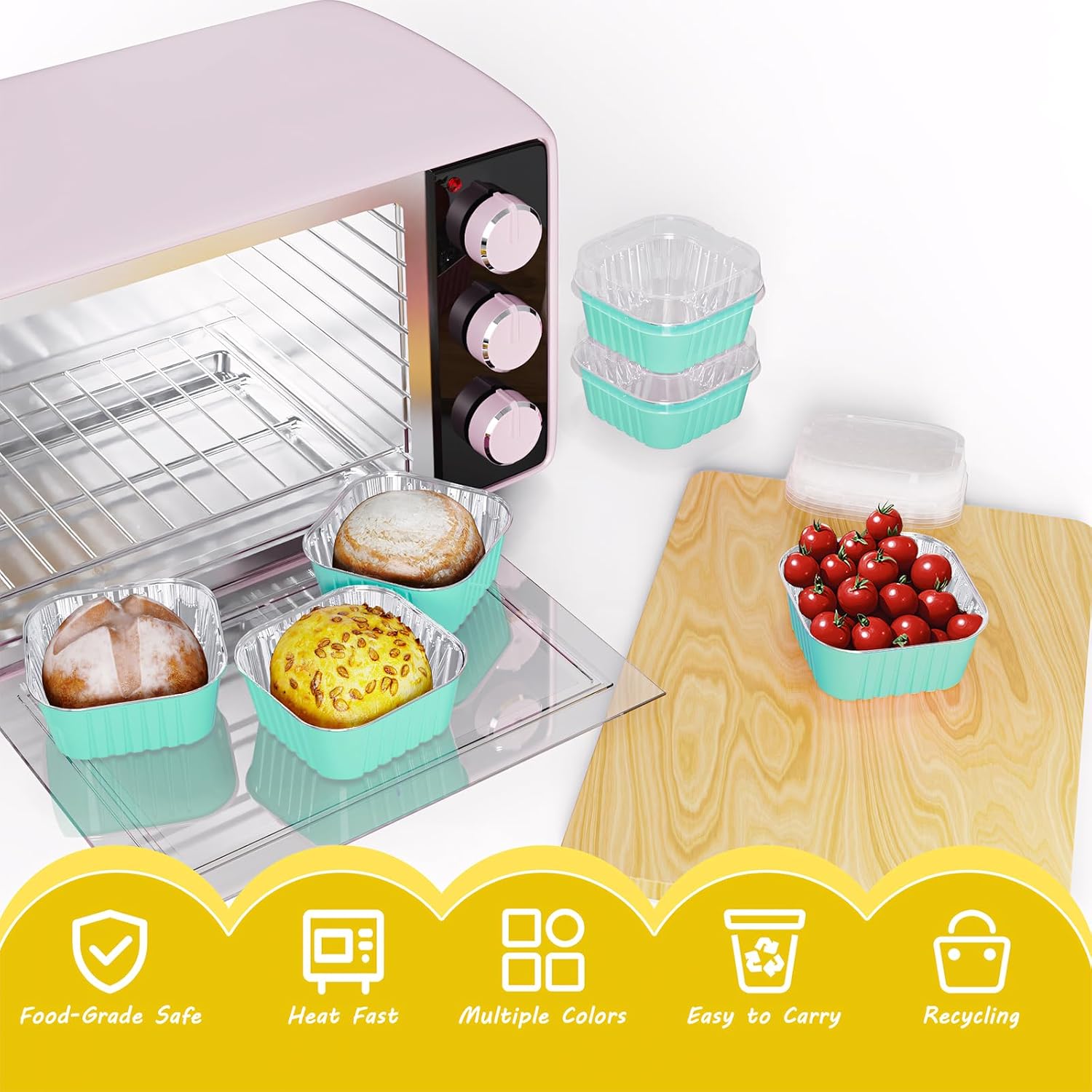 - Easy to Use:These mini baking trays are made of thick food-grade aluminium foil, this aluminium baking cups conduct heat well and can shorten baking time.The jumbo muffin tin can be grilled on the fire, ideal for making caramel pudding, charcoal-grilled cheese, etc. Please kindly note that the clear lids are not heat resistant. and please allow cups to cool prior to applying lids