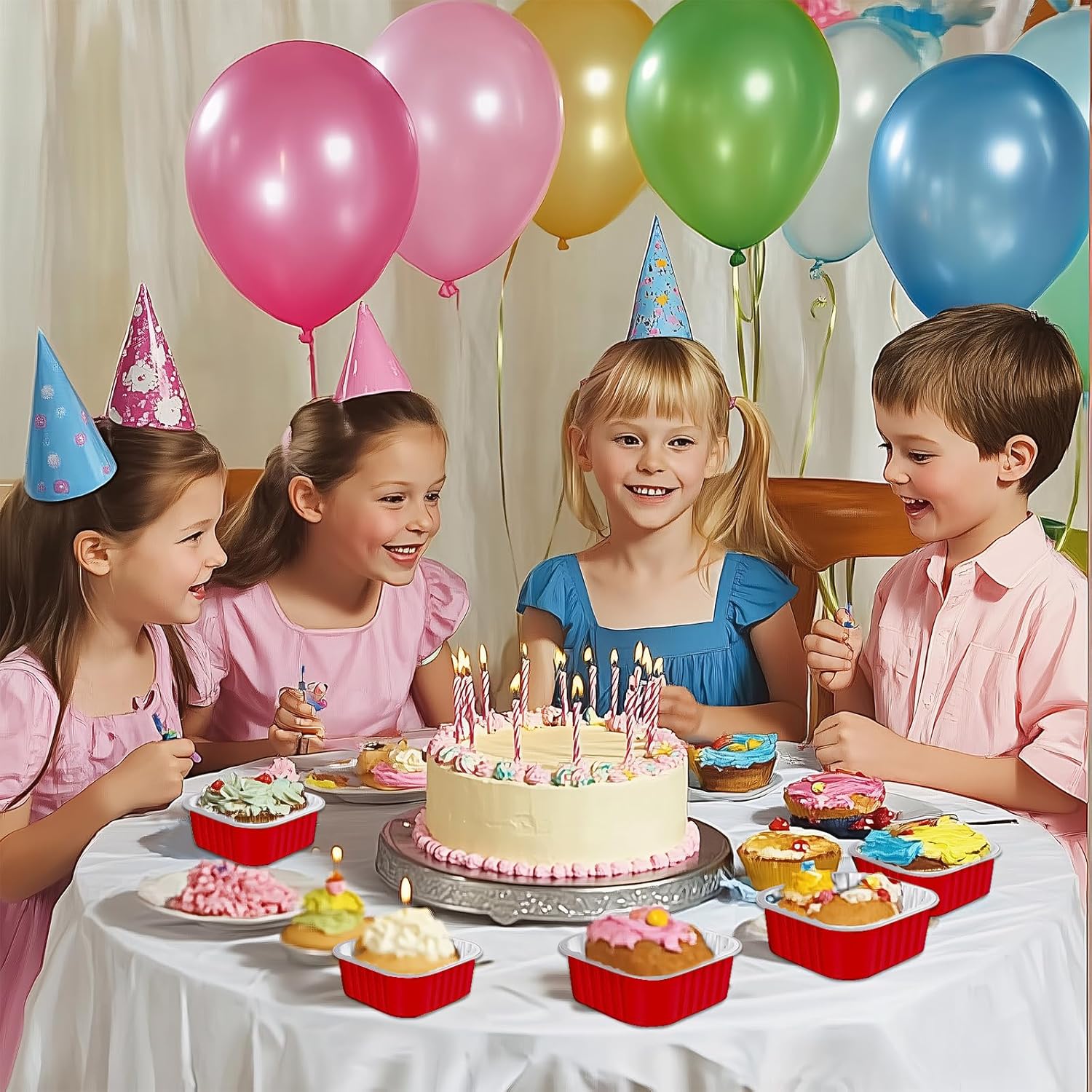 25 Pack Square Mini Cake Pans with Lids,Mini Loaf Pans with Lids,Aluminum Foil Baking Cups,Disposable Ramekins Cupcake Cups,Dessert Cups for Wedding Birthday Party Picnics,5oz (Red)