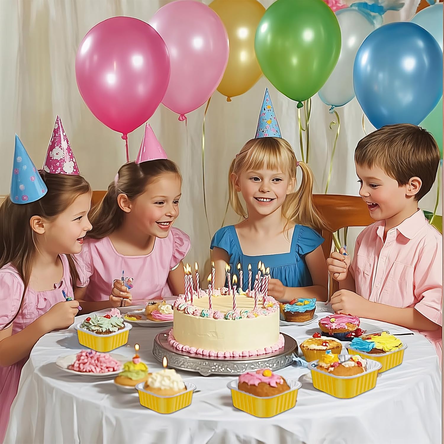 25 Pack Square Mini Cake Pans with Lids,Mini Loaf Pans with Lids,Aluminum Foil Baking Cups,Disposable Ramekins Cupcake Cups,Dessert Cups for Wedding Birthday Party Picnics,5oz (Gold)