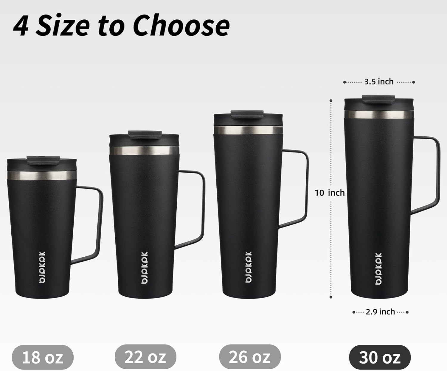 BJPKPK Insulated Tumbler with Handle, 30oz Insulated Tumblers with Lid and Straw, Stainless Steel Metal Water Bottles, Coffee Travel Mugs, Cups, Black