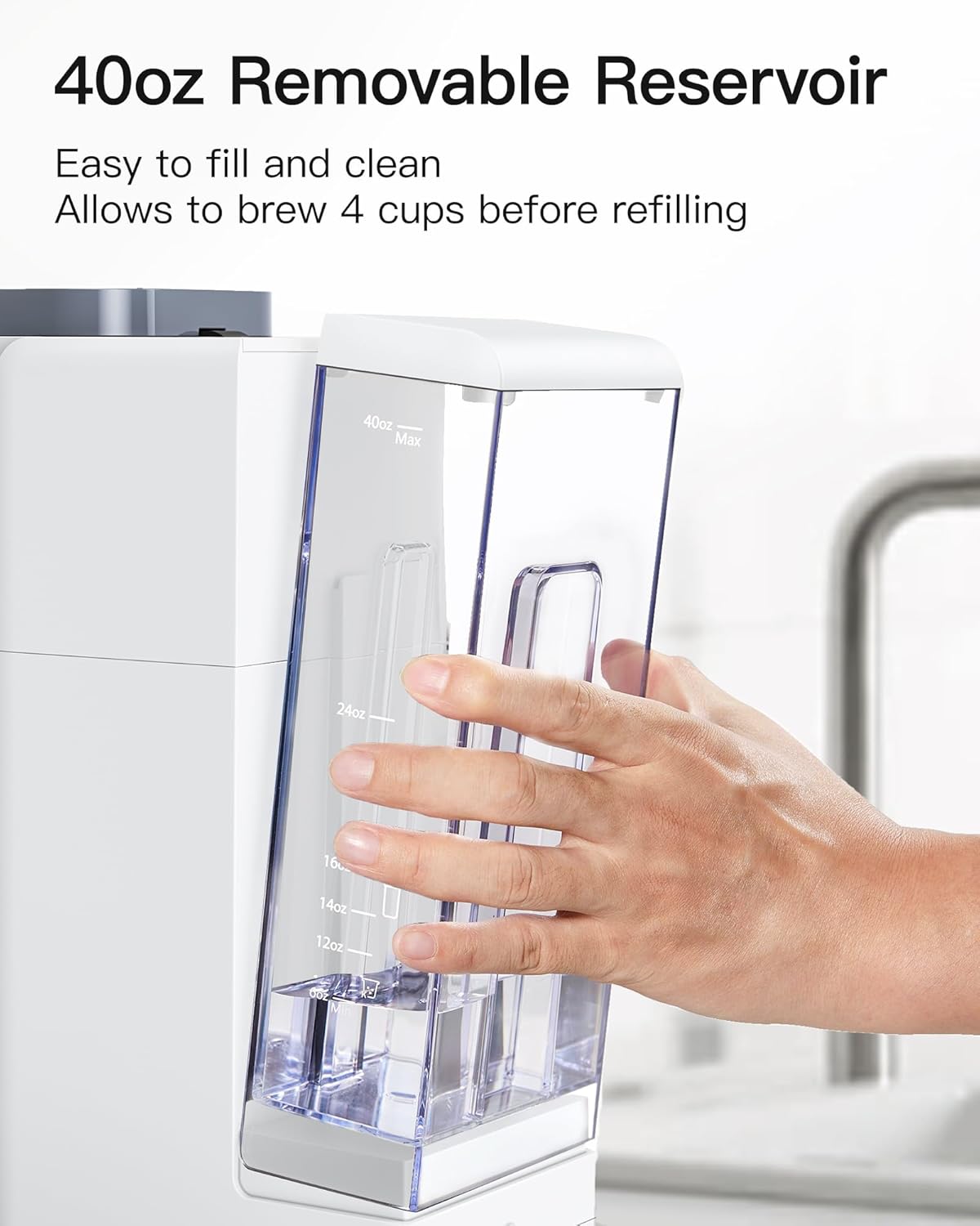 - REMOVABLE 40 OZ TANK: Brew 4-5 cups before refilling with the detachable reservoir