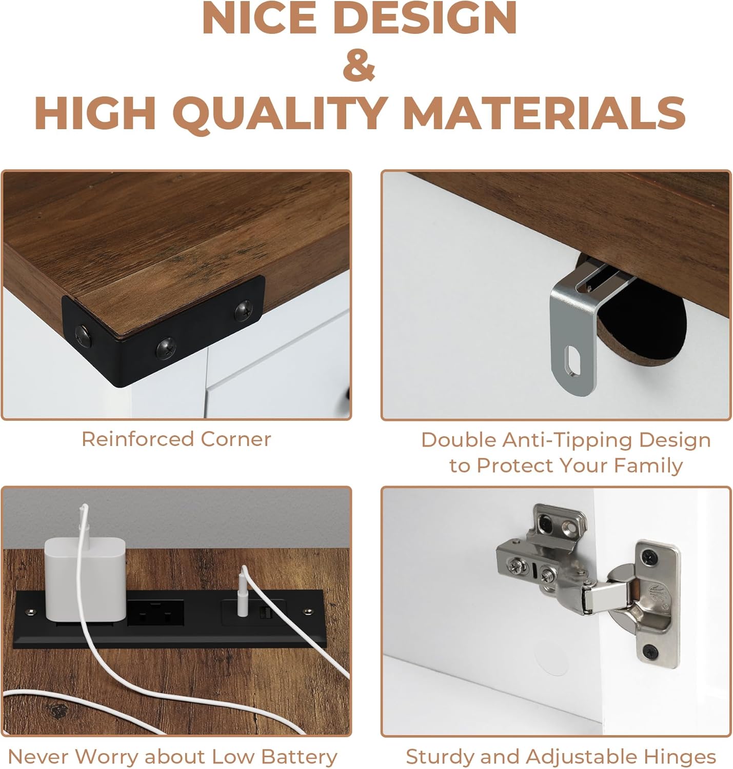 - 【Better Wood】Thicker and Denser Wood. The coffee bar cabinet with 2 drawers and 4 barn doors is made from thicker MDF wood.The material with higher density is sturdier and smoother, largely reducing the likelihood of scratching, peeling and cracking.