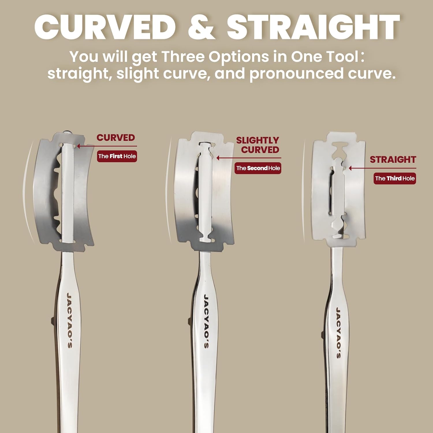 - Freely Adjust Blade Curvature: JACYAO'S bread scoring tool adopts a straight handle design, you can freely choose the different holes of the razor blade to adjust the curvature of the blade. The largest curvature can be used for large bread scoring such as baguettes, and the smallest curvature can be used for delicate carvings
