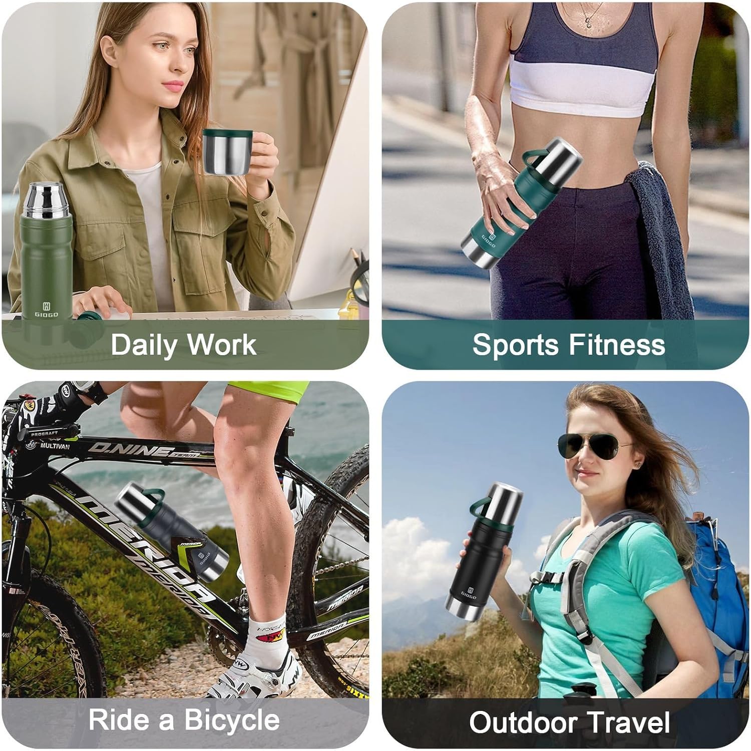 - Convenient Multi-purpose Lid: The thermo features a new screw top design that is leak proof so you can carry it in your backpack without worrying about any leaks. The lid with D-ring doubles as a serving cup while being easy to hang on your backpack for more scenarios