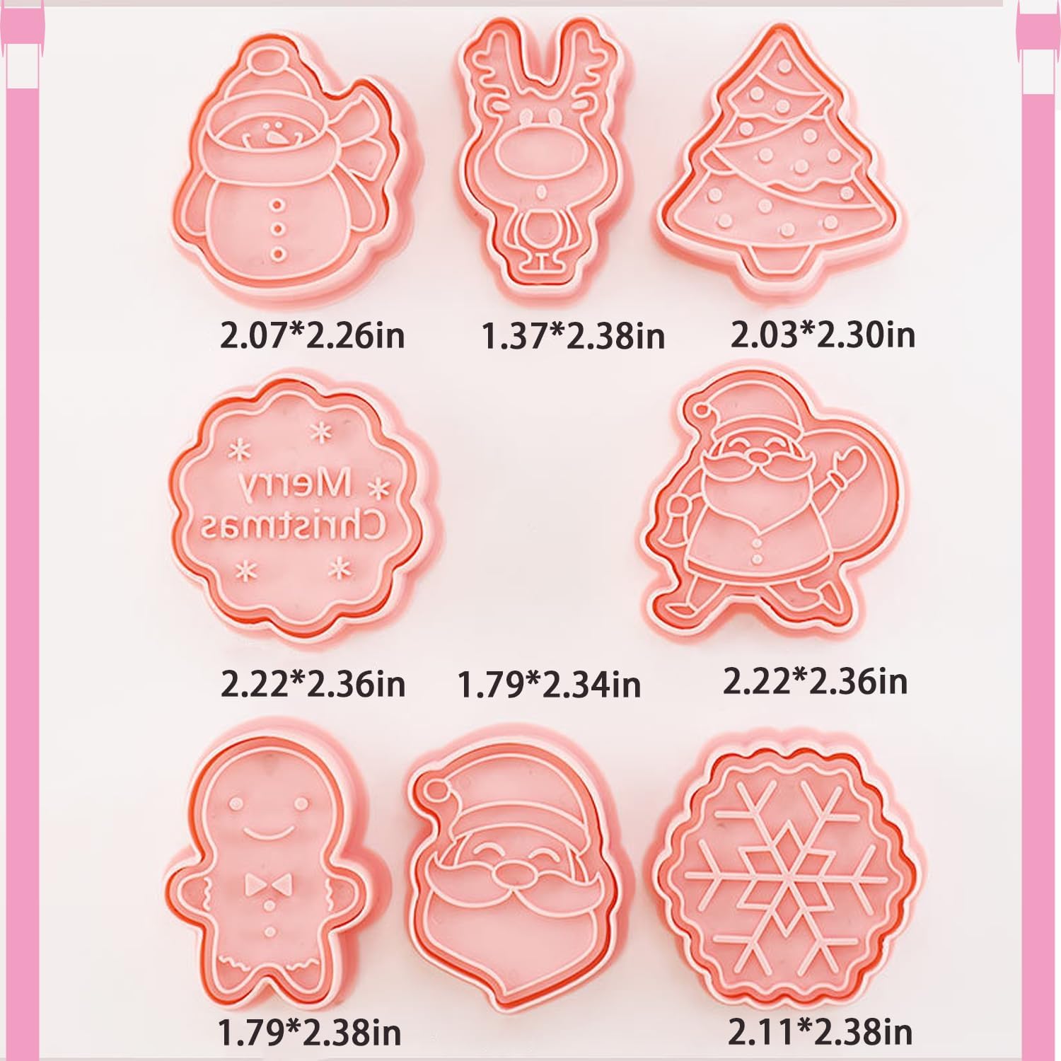 8Pcs Christmas Cookie Cutters, 3D Plastic Snowflake, Santa, Tree, Snowman Design Biscuit Mould and Cutters