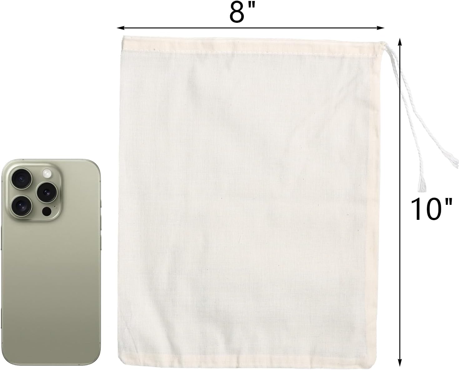 Eketirry Spice Bags, 10pcs Reusable Empty Tea Bags, Muslin Strainer Bags, Soup Bags for Cooking, Natural Cotton Fine Mesh Cheesecloth Bags for Cold Brew Coffee(8 x10Inch)