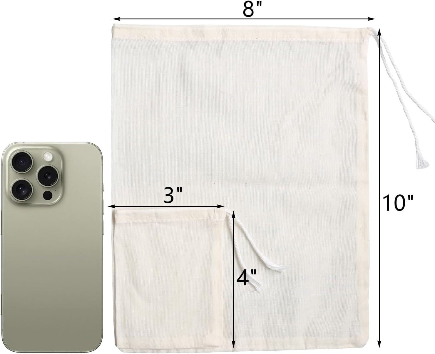 - Size for you to use: For tea : 2 x3inch/6*8cm, 3 x4inch/8*10cm, or 4 x6inch/10*15cm; for spice : 3x4inch/8*10cm, 4 x6inch/10*15cm; for cold brew coffee: 4 x6inch/10*15cm, 5 x6.3inch/13*16cm, 6*8inch/15*20cm ; bags for straining food: 7 x8inch/18*20cm, 8 x10inch/20*25cm. You could choose the sizes based on your need.