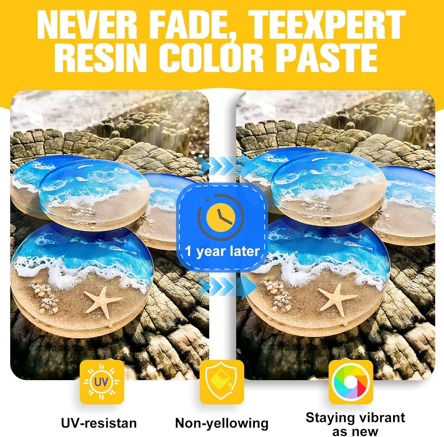 Teexpert Pigment Paste for Epoxy Resin: 10.15oz/300ml Highly Concentrated & Easy to Mix 6 Colors Opaque Liquid Epoxica Dye Set for Resin Coloring, Resina Art Painting and DIY Projects