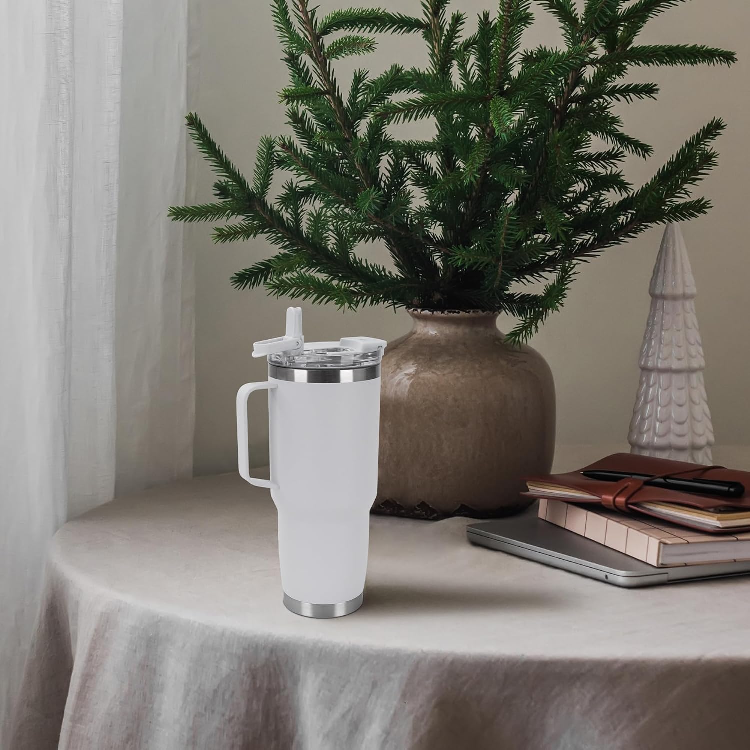 30oz Tumbler with Handle, Insulated Leak Proof Coffee Travel Mug with Straw Lid Double Wall Stainless Steel Vacuum Tumblers Metal Cup Keep Hot and Iced Drink for Gym, Office, Camping, White 1 Pack