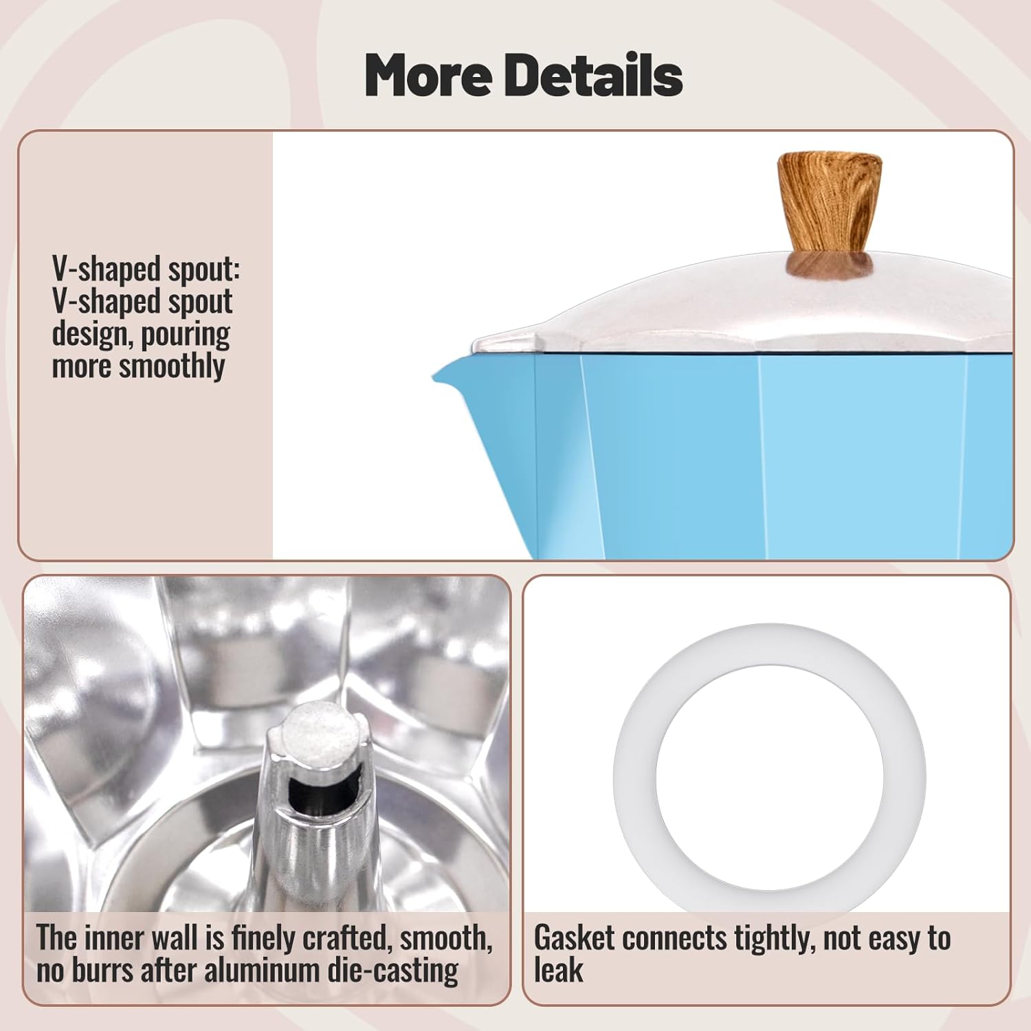 - Exquisite Taste Experience: Elevate your coffee moments with our Moka pot. It's not just about the incredible taste of your cup of coffee; it's about the whole experience. Unleash your creativity and prepare personalized, smooth, and rich brews for your loved ones, evoking elegance and style, regardless of the occasion or setting