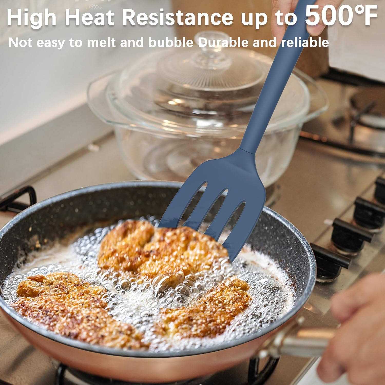 Coukre 2 Pack Silicone Spatula Set, High Heat Resistant, BPA Free Kitchen Spatula, Solid & Slotted Turner for Non-Stick Pans, Sautéing, and Flipping (2, PureDarkBlue)