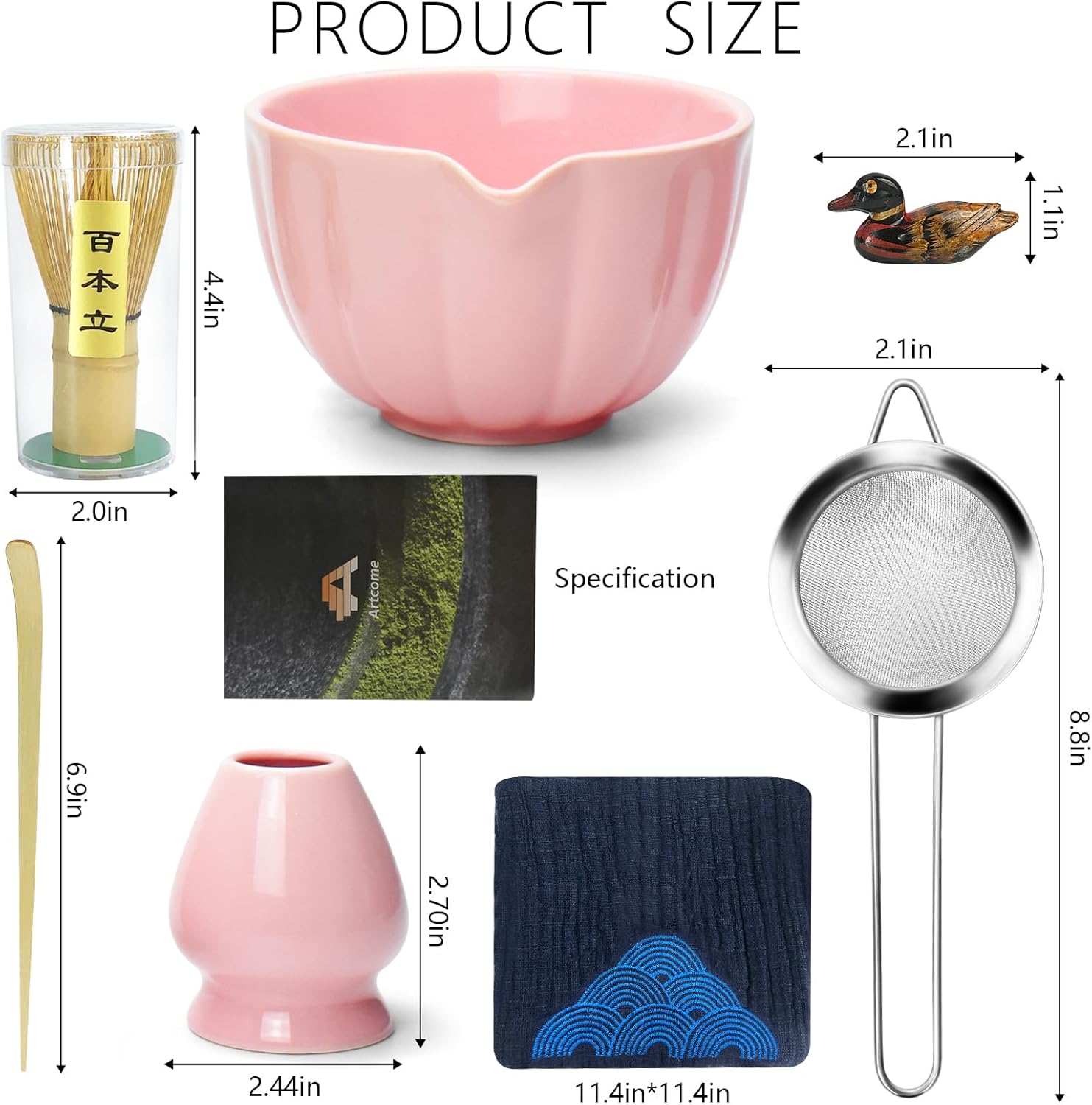 - Complete Set: Includes matcha bowl, whisk, tea scoop, whisk holder, tea scoop holder, tea cloth, matcha powder strainer and tea manual.