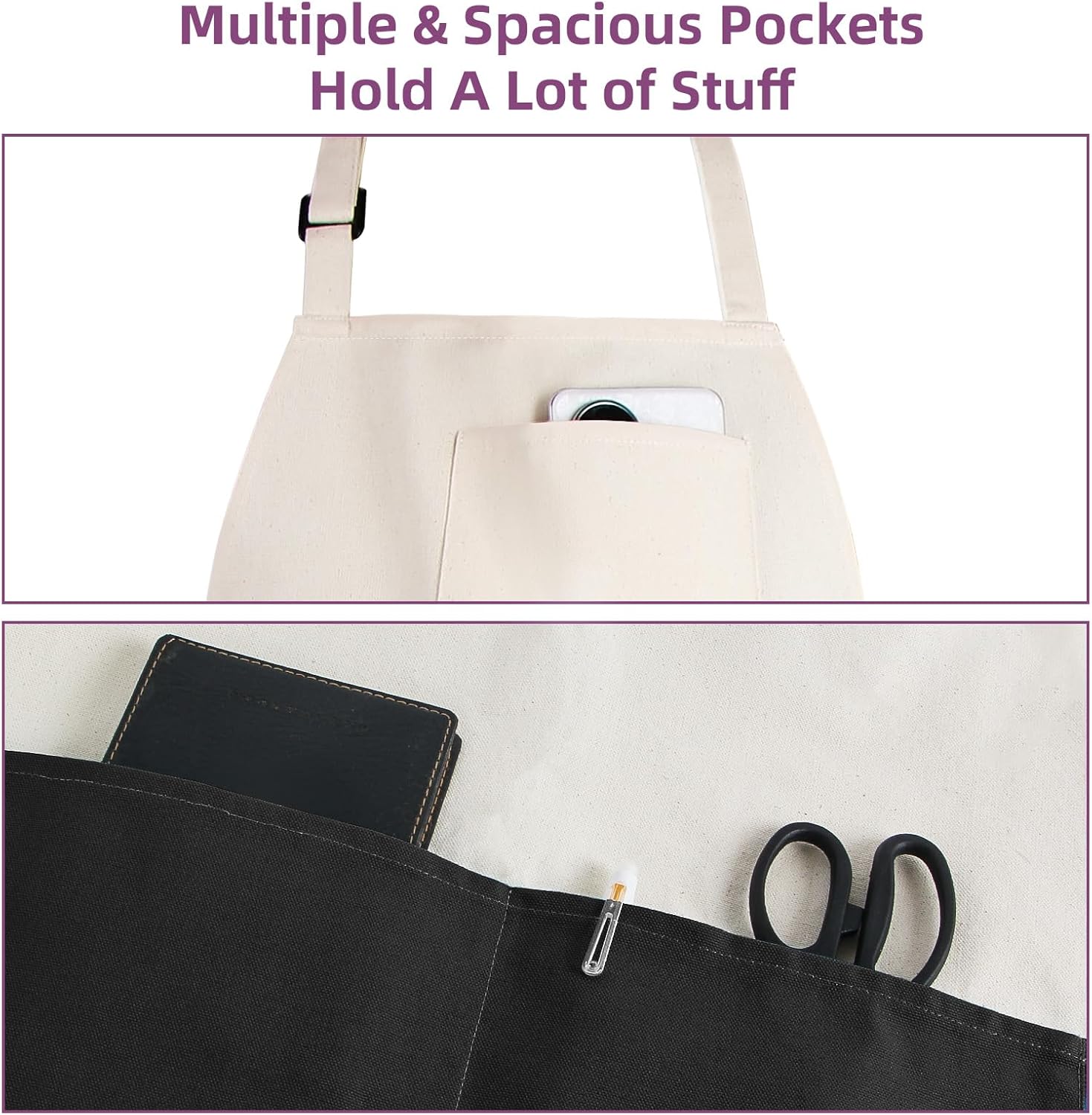 • All the Pockets You Need – Tools, Towels, and More Equipped with multiple deep pockets, this apron holds everything from spatulas and tongs to phone and notepads. Plus, a built-in towel loop keeps your dish towel always within reach – no more searching while you cook!