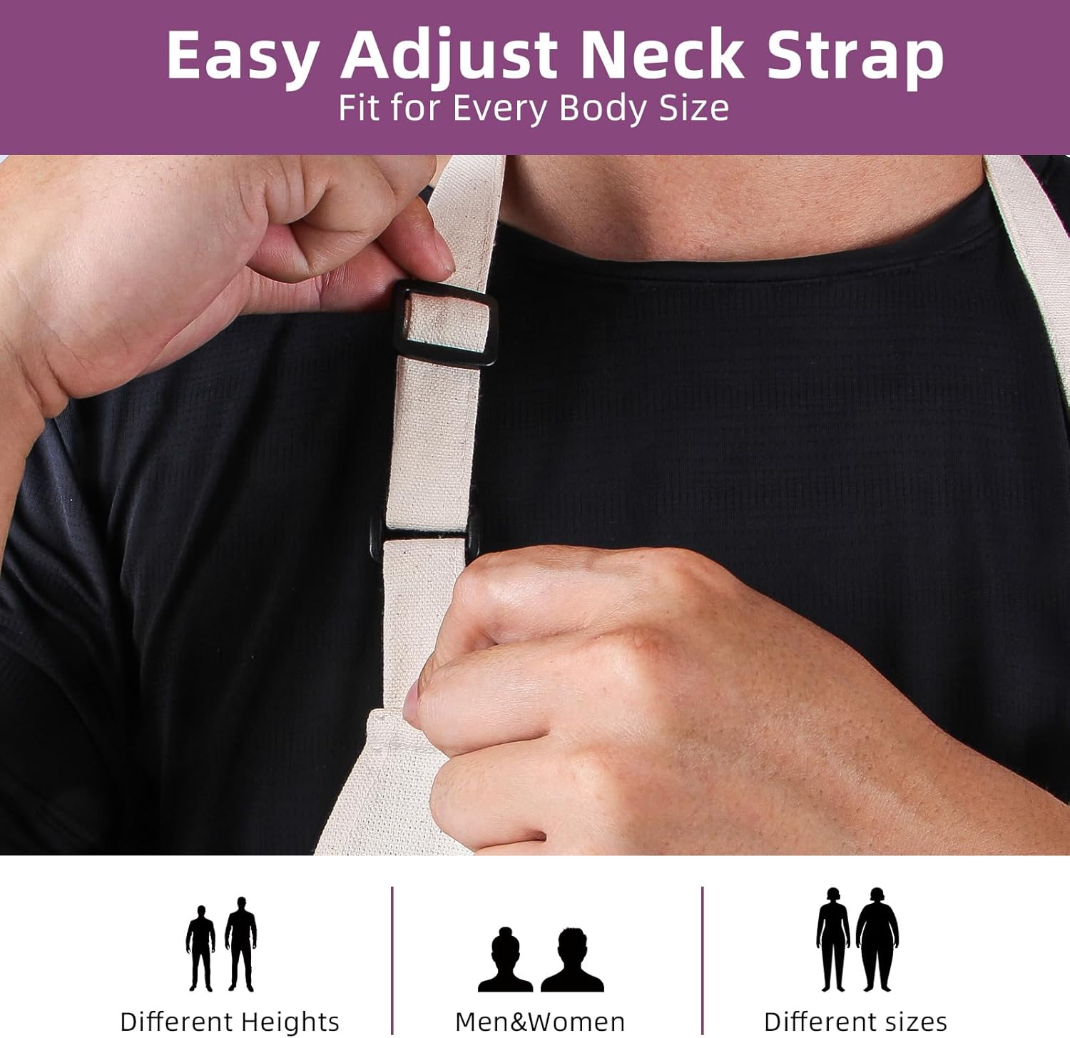 • Comfortable Fit – Adjustable for Every Body The cross-back straps reduce neck pressure and are fully adjustable for a perfect fit. Whether you’re tall, short, slim, or broad-shouldered, this apron adjusts to you. It’s great for long hours in the kitchen or at the grill.