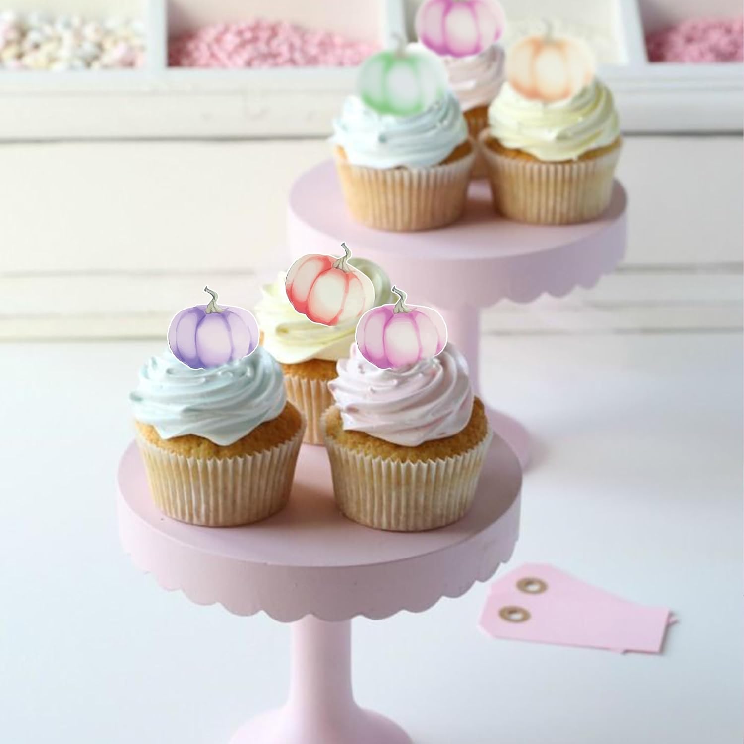 40Pcs Edible Pumpkin Cupcake Toppers Autumn Thanksgiving Theme Party Wafer Paper Color Pumpkin Cupcake Toppers Baby Gender Reveal Party Supplies