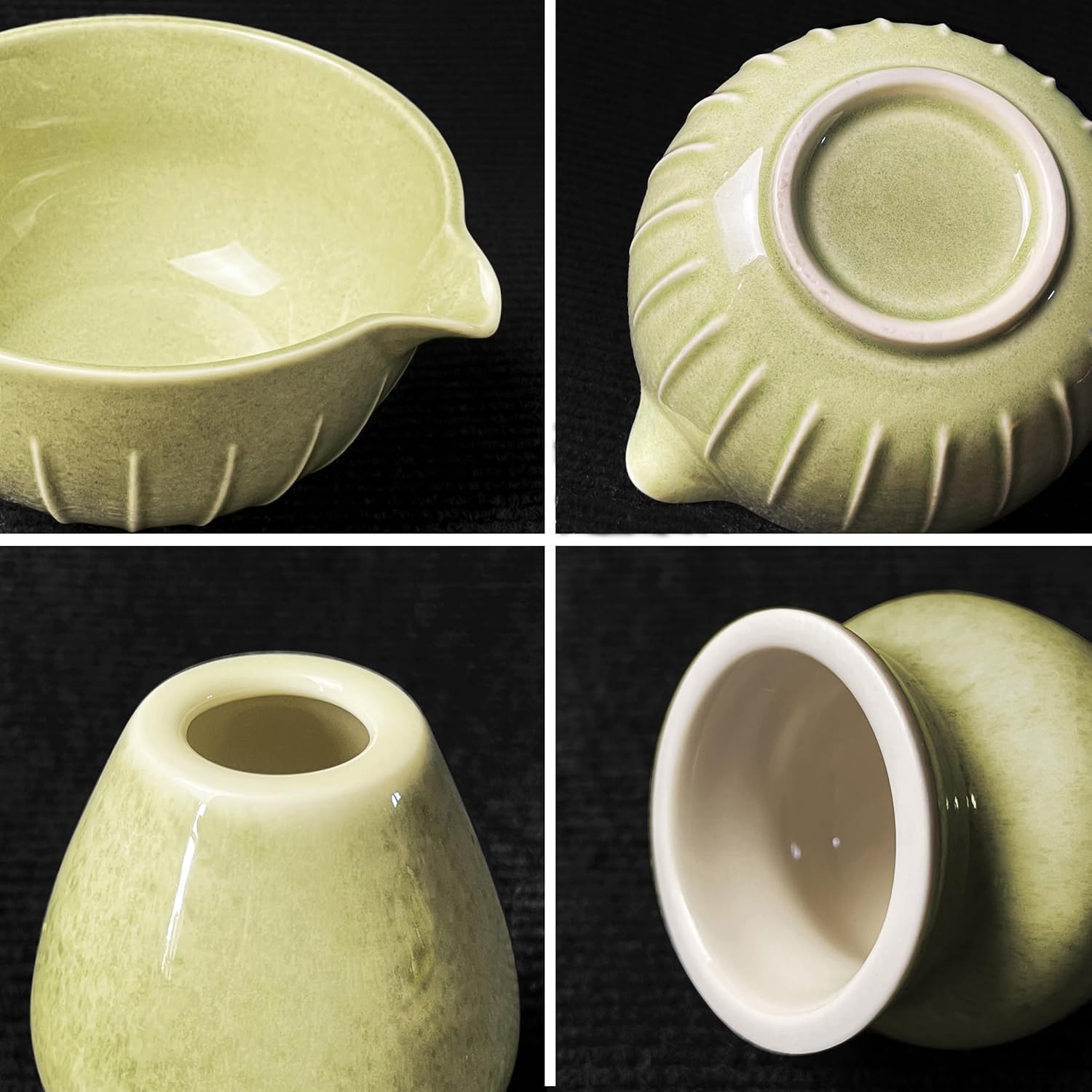 Matcha Whisk Set (7pcs) - Matcha Set with Whisk,Pouring Spout Bowl(15oz),Chasen Holder,Powder Sifter,Bamboo Scoop with Stand,Tea Cloth,Perfect Tools Kit for Tea Ceremony(Celadon Green)