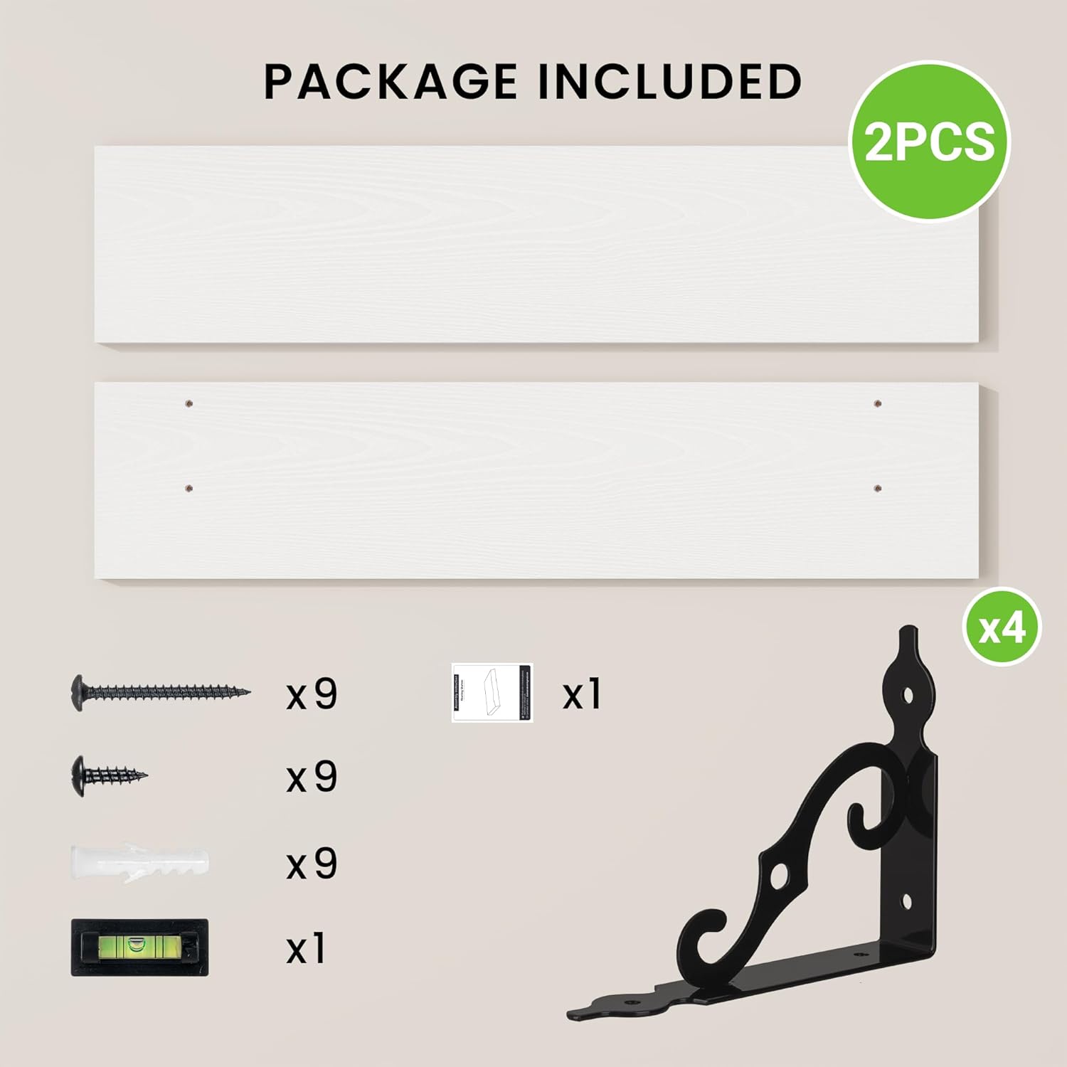 - Perfect Home Decor: This wood shelf fits rustic style, or vintage style home decor, rustic wood grain and exquisite S-shaped brackets will make your home full of modern and elegant romance. Our floating shelf makes full use of the wall, and let your room and bathroom look so cute