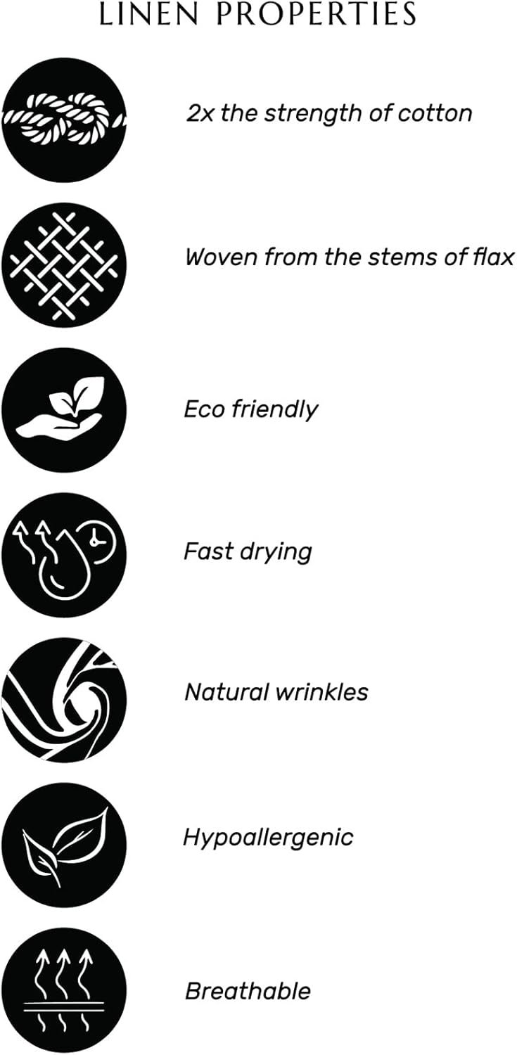- 𝗘𝗮𝘀𝘆 𝗖𝗮𝗿𝗲 : 𝗠𝗮𝗰𝗵𝗶𝗻𝗲 𝗪𝗮𝘀𝗵𝗮𝗯𝗹𝗲, Low Iron as Needed, Steam Iron for a crisp look. The beauty of each pure linen piece is the natural fibers and classic aesthetic that mellows with each washing, betters with age and requires minimal care.