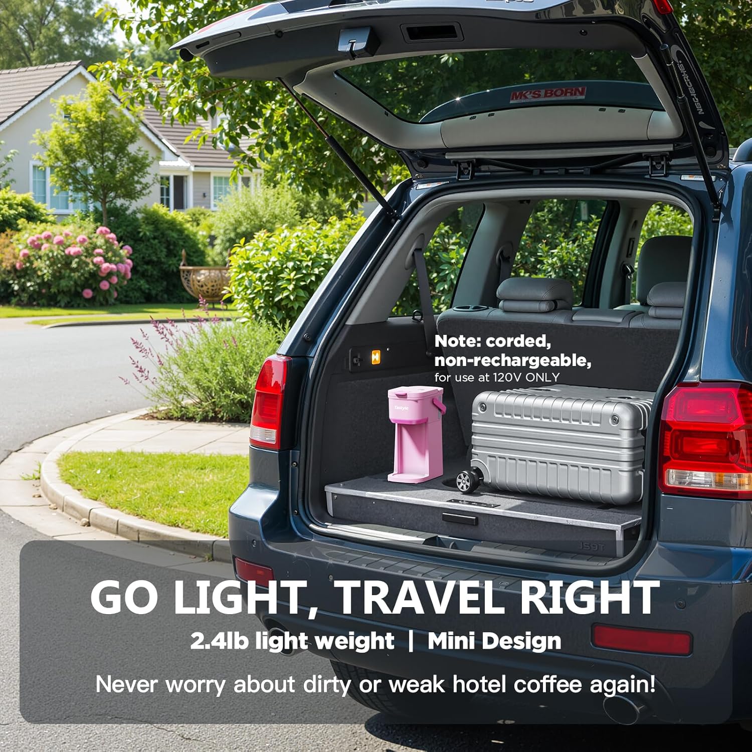 Single Serve One Cup Coffee Maker, for K Cups and Grounds, Mini Coffee Maker with Portable Handle, 6 to 12 Oz Brew Size, for Travel, Camping, Office, RV and Dorm, 120V, Dusty Rosa