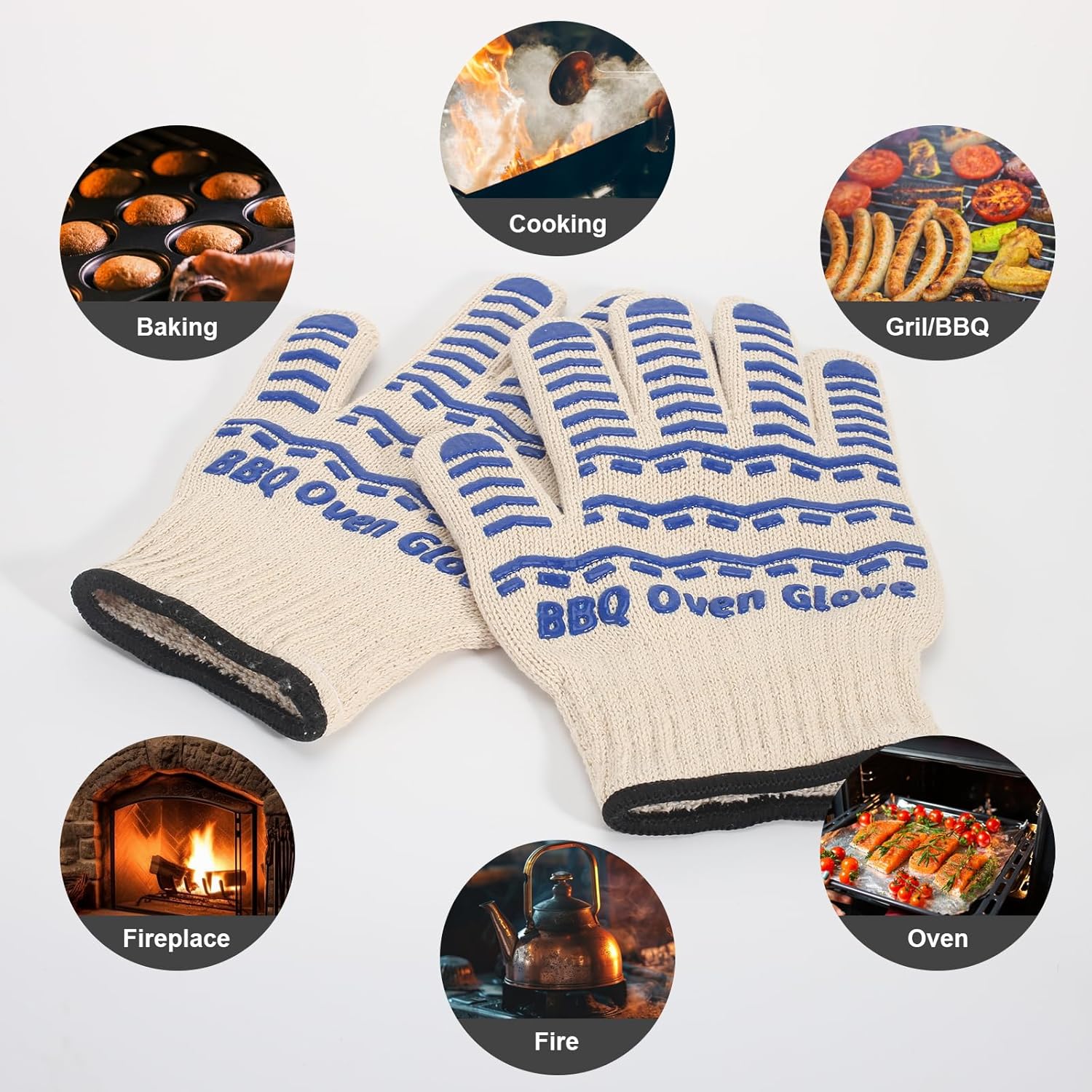 BBQ Gloves 932℉ Heat Resistant Oven Gloves, Cooking Gloves for BBQ, Grilling, Baking,Cutting, Smoker Fireplace-1 Pair(Blue)