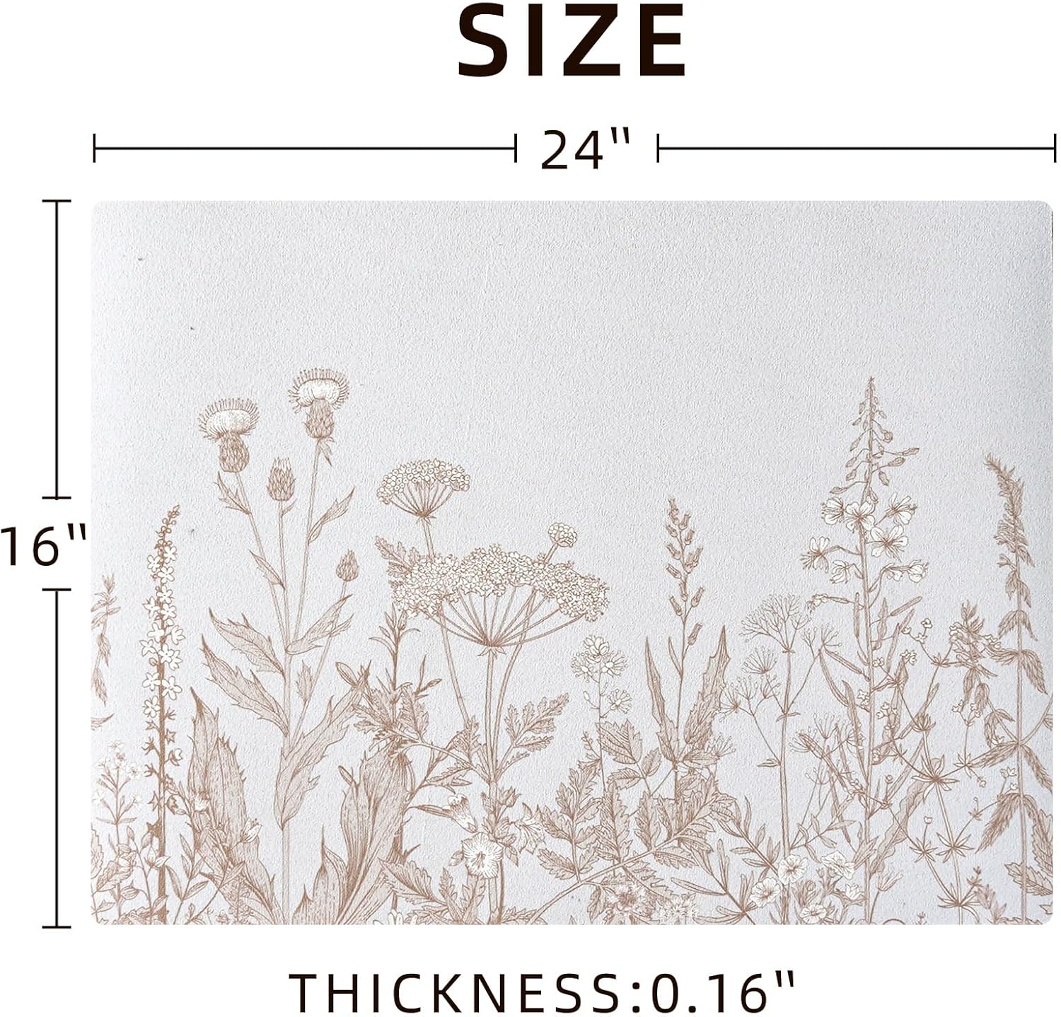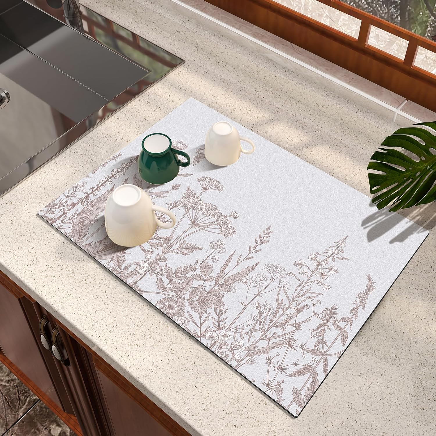Dish Drying Mat Absorbent Coffee Mat Rubber Backed Soft Silicone Kitchen Drying Mat for Kitchen Bathroom Coffee Bar (Plants, 16 x 24 Inches)
