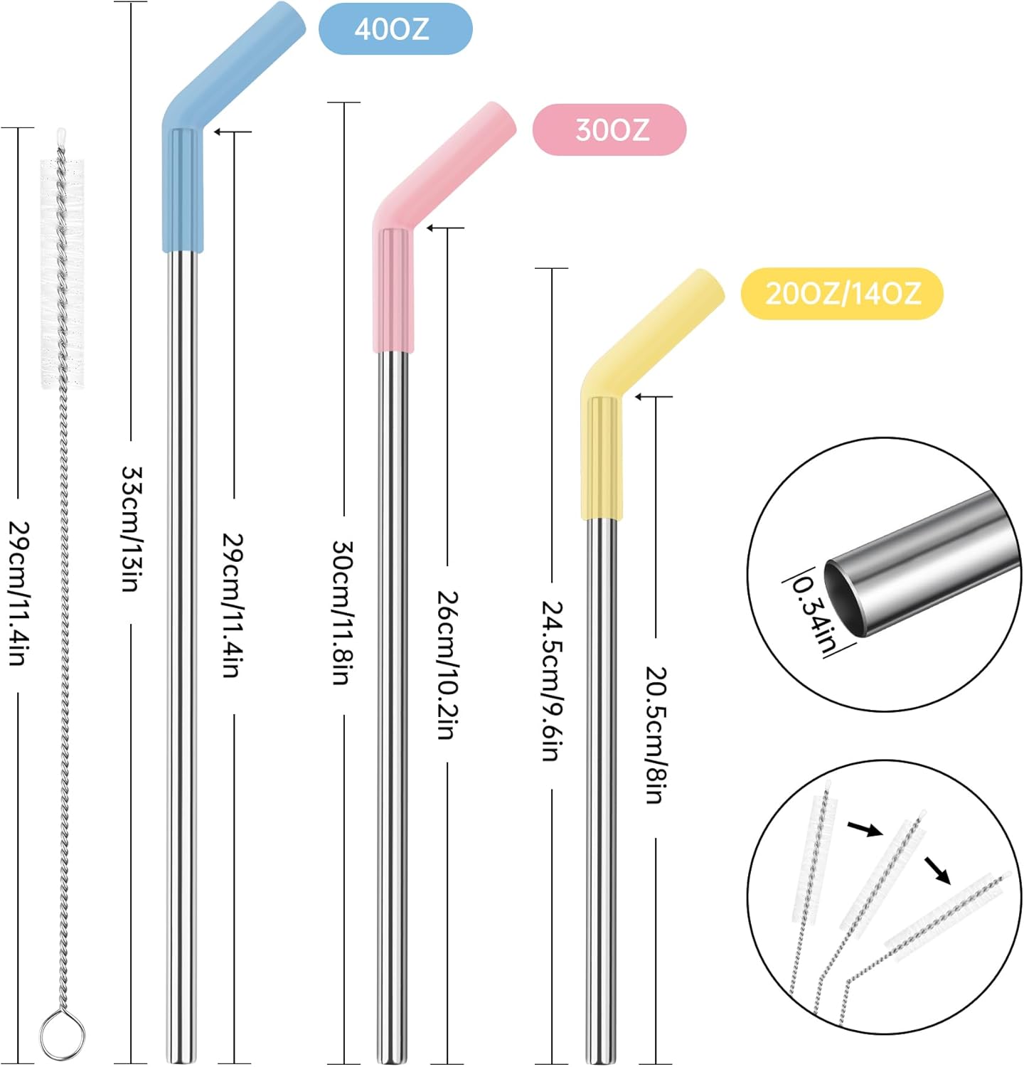 - Easy to Clean: Designed with convenience in mind, the detachable silicone tips and included cleaning brushes make the straws easy to clean. Plus, the stainless steel straws are dishwasher safe for worry-free maintenance.