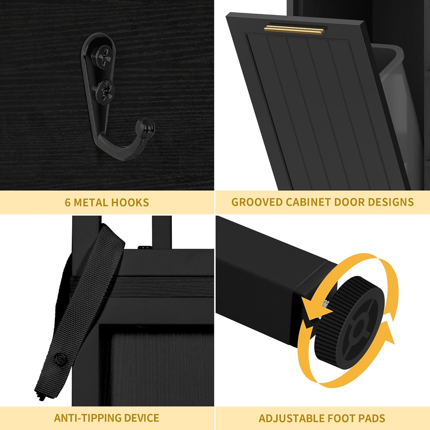- Sturdy, Versatile Storage Solution: Crafted from durable, water-resistant engineered wood, this kitchen bakers rack can bear up to 150 lbs. Six metal hooks provide ample space to hang pots, pans, and more, while non-slip feet protect your floors