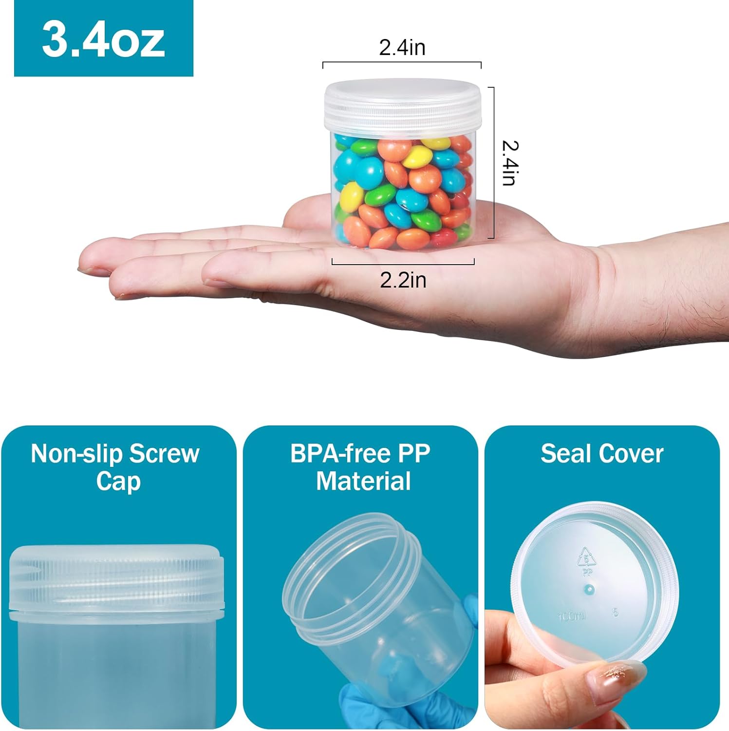 - Attentive Service: What you will get is a set of 4 pcs of 3.4 oz empty plastic jars with lids. We also offer excellent service. If you have any questions or concerns, contact us, and we'll assist you promptly