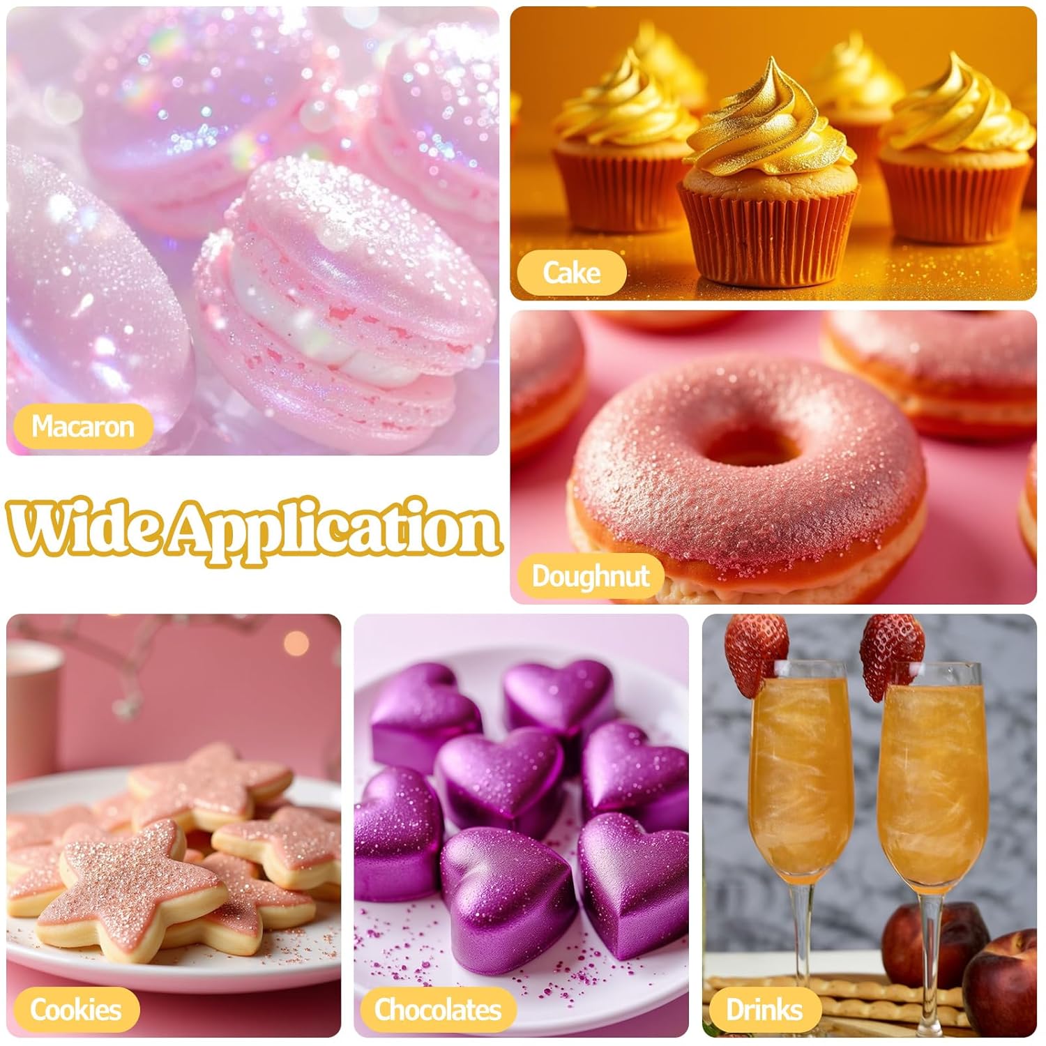 - Safe & Non-Toxic -100% edible food-grade glitter powder in 0.28 oz/8 g. Our edible glitter is made from food-grade ingredients that is vegan-friendly, gluten-free, dairy-free, non-GMO, it will not alter the original taste or texture of beverages and foods. so everyone can use and enjoy this product regardless of diet or food allergies