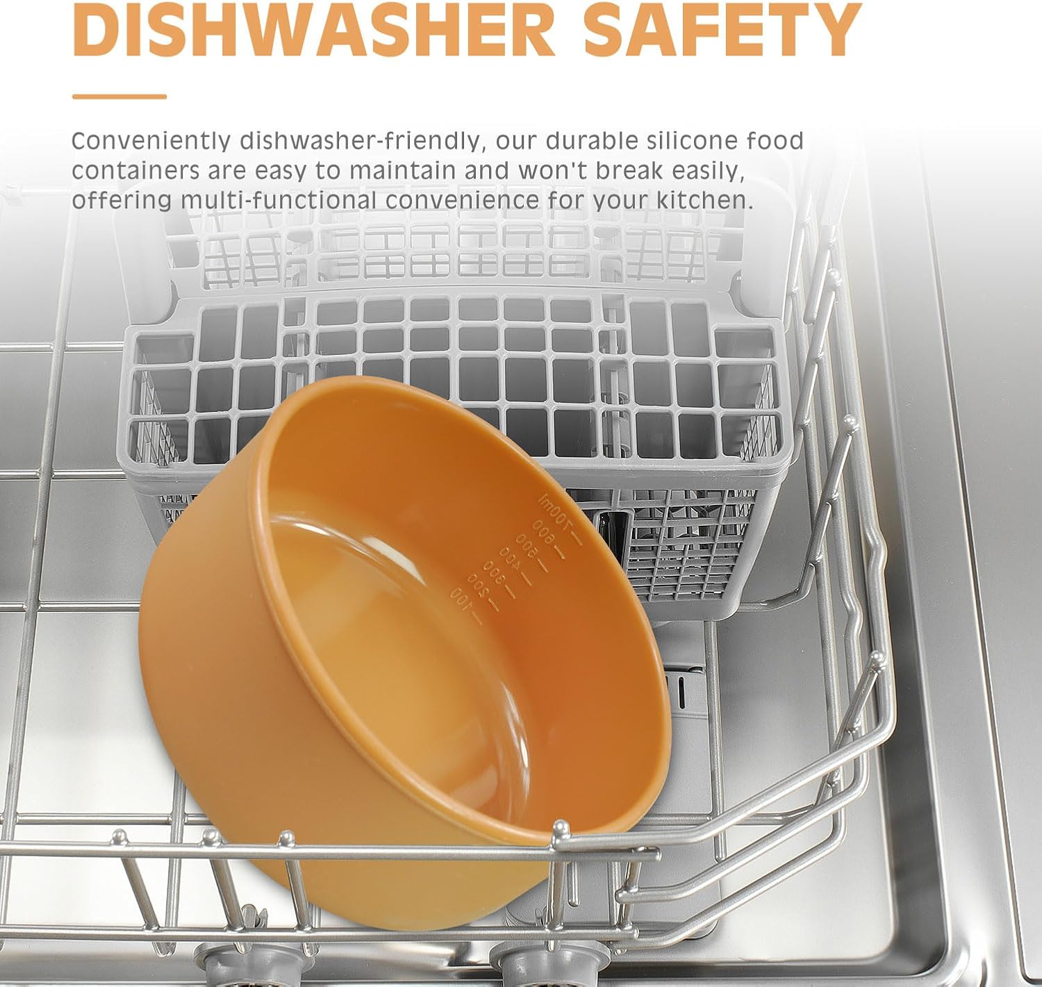 XU&PEIQI Silicone Food Storage Containers & Round Bowls with Lids - Meal Prep Containers for Kitchen Serving, Salad & Lunch - Airtight Microwave/Fridge/Dishwasher Safe BPA-Free 24oz.(Beige)