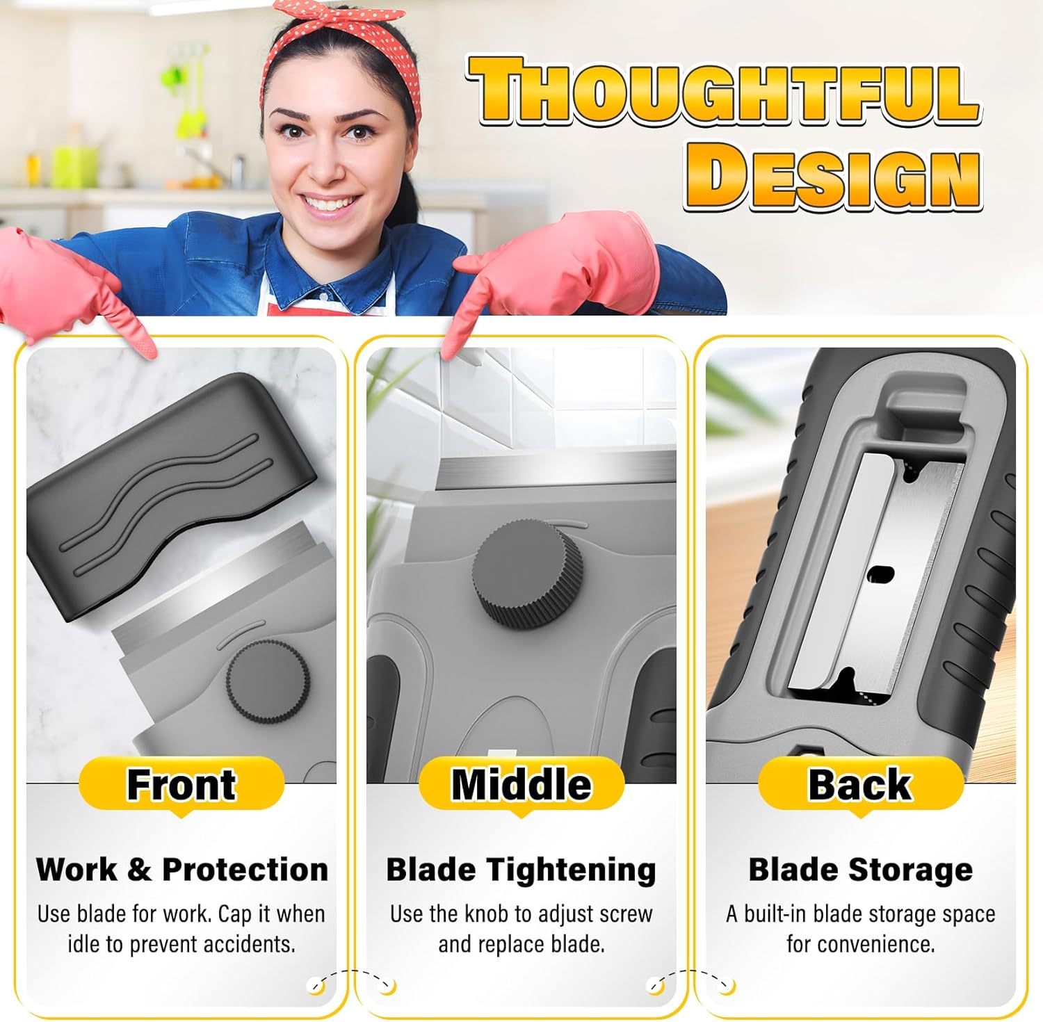 - Portable & Good Storage: The razor scraper is equipped with a hanging hole, convenient for storage and preventing loss and damage. It is small, light, and easy to carry. With a built-in blade storage compartment, it always keeps blades organized. Whether at home, on the construction site, or for outdoor work, it can meet your usage needs at any time, providing convenience for your work.