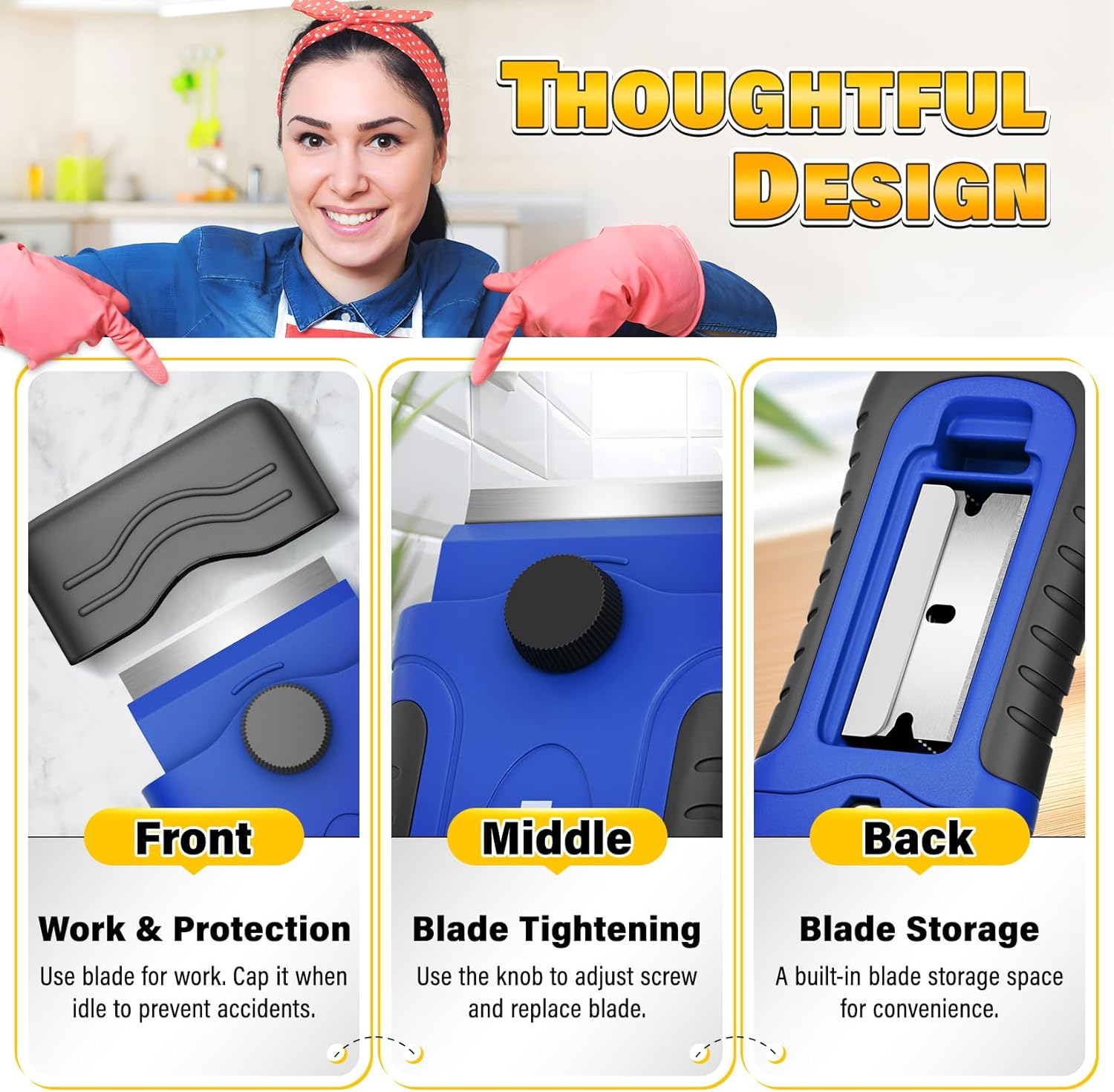 - Portable & Good Storage: The razor scraper is equipped with a hanging hole, convenient for storage and preventing loss and damage. It is small, light, and easy to carry. With a built-in blade storage compartment, it always keeps blades organized. Whether at home, on the construction site, or for outdoor work, it can meet your usage needs at any time, providing convenience for your work.