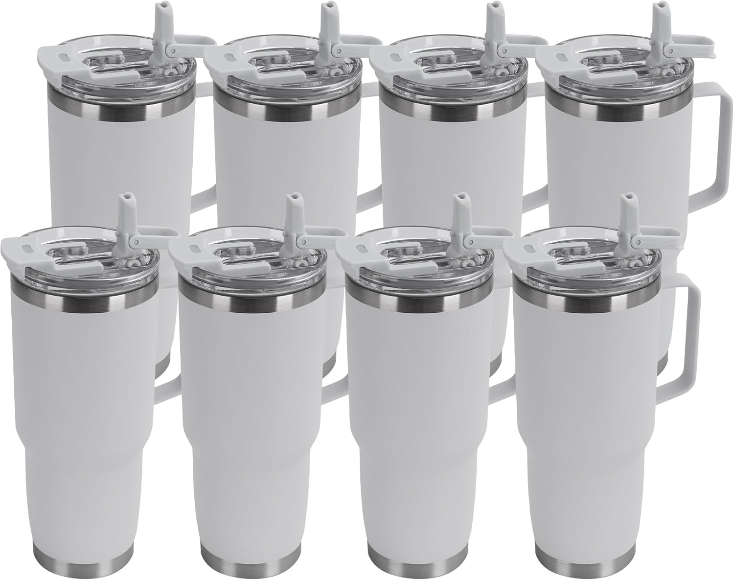 HASLE OUTFITTERS 30oz Tumbler Bulk with Handle, Insulated Travel Coffee Mug Set with Handle Leak-Proof Double Wall Stainless Steel Vacuum Tumblers Pack Metal Cup for Hot and Cold Drink
