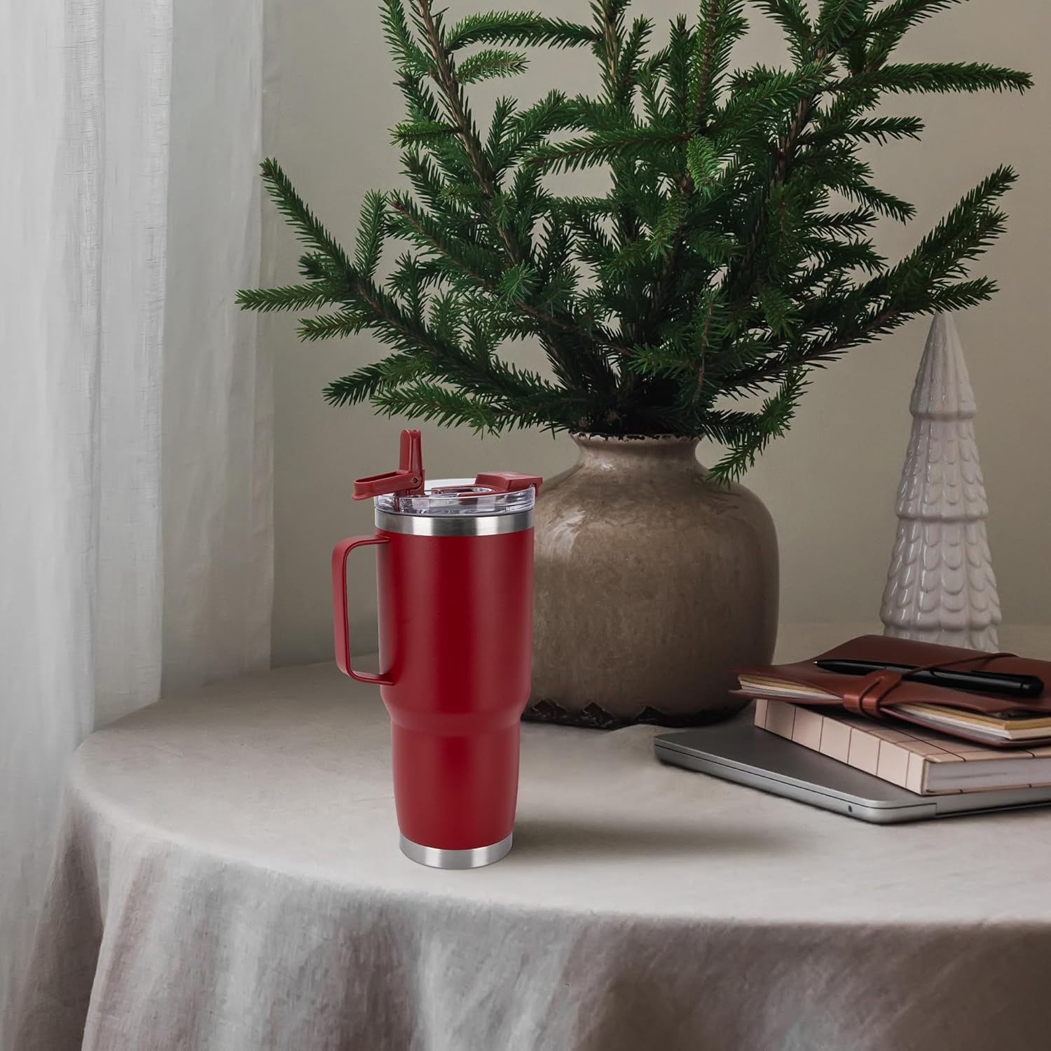 - Tumbler with handle:The welded handle provides a firm grip on your drink. It's large enough for anyone to hold easily, allowing you to carry the tumbler around and take a sip with one hand.
