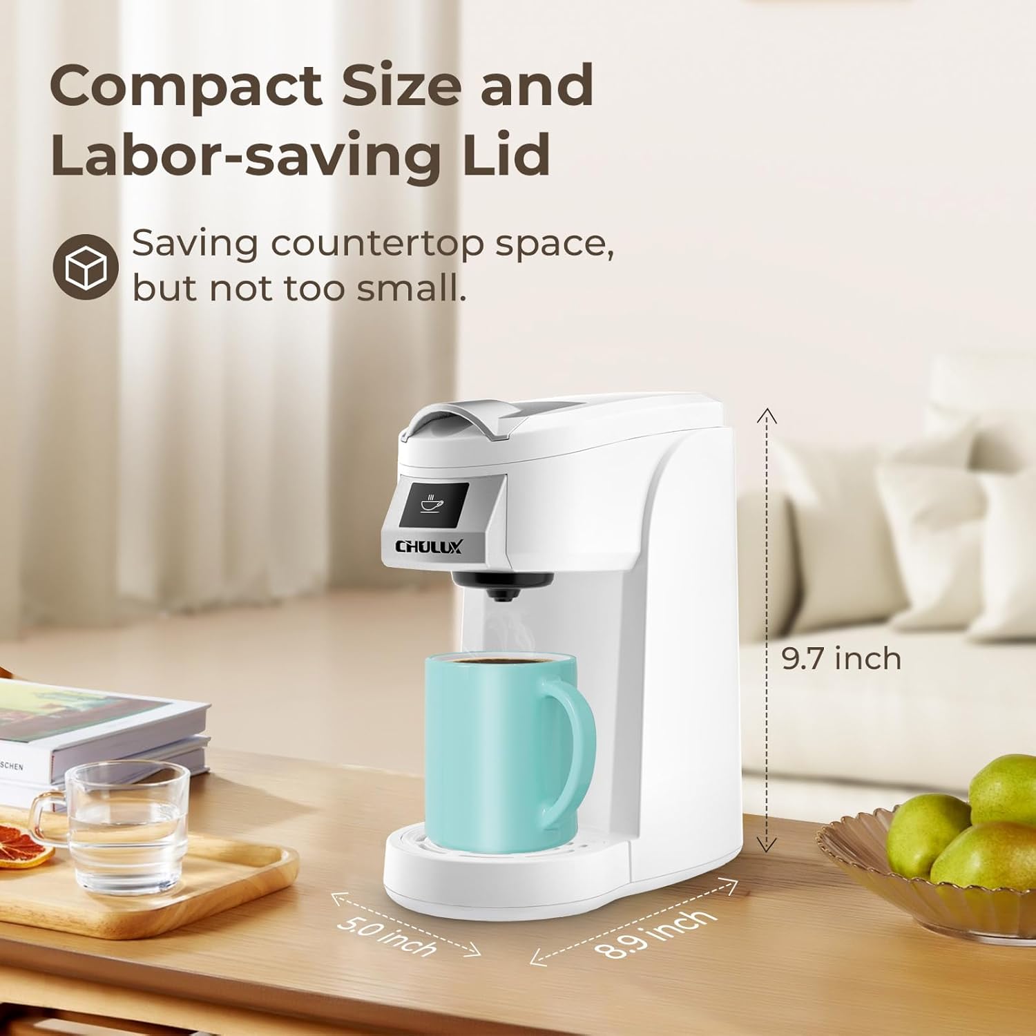 CHULUX Classic Single Serve Coffee Maker for K Cup, One Button Easy Coffee Machine for Office, RV, Travel and Dorm, White