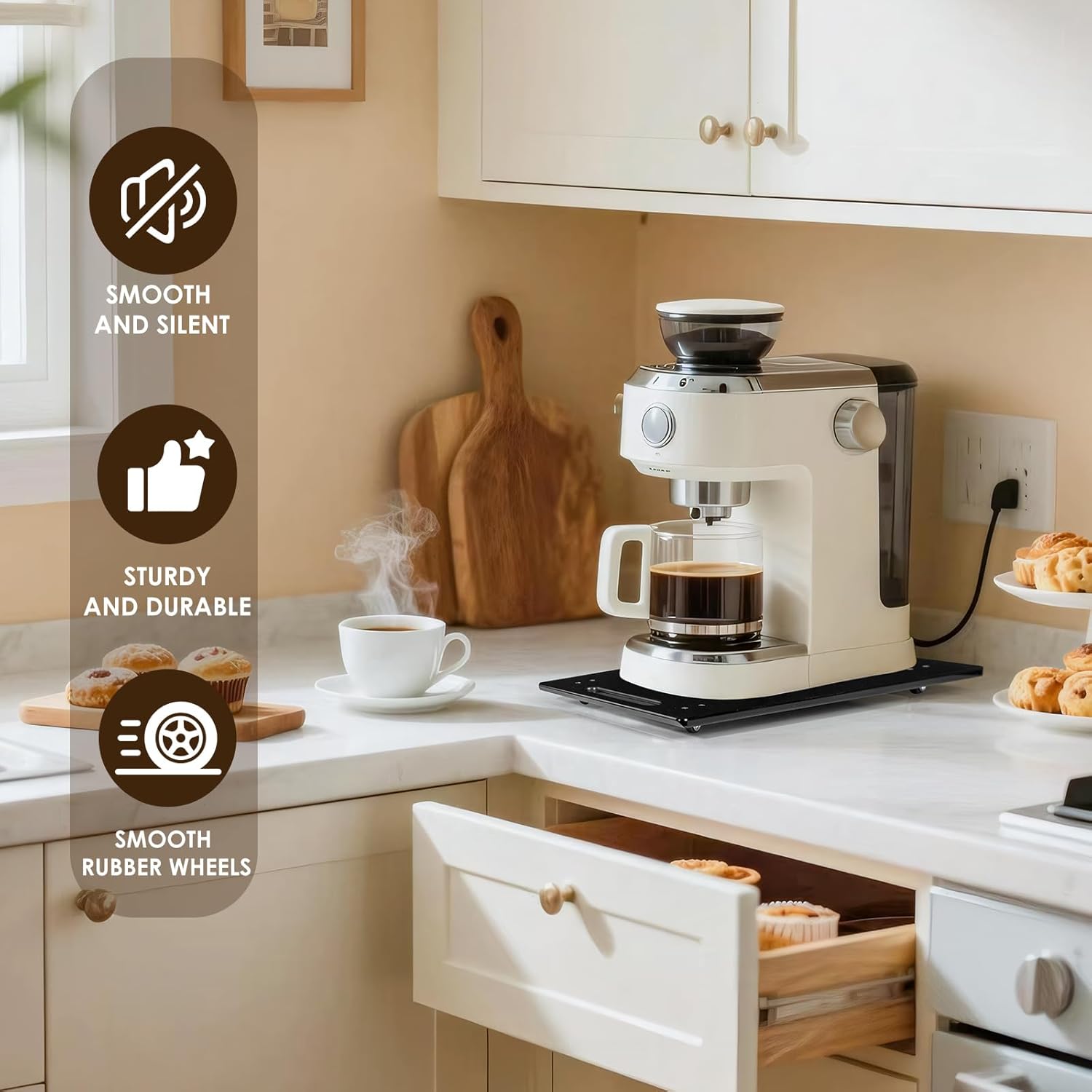 Appliance Sliders for Kitchen Appliances Sliding Tray for Coffee Maker, Espresso Machines, Mixers Sturdy Kitchen Aid Sliders for Mixer -Duty Equipment with Rubber Wheels - 13" x 14" (Black