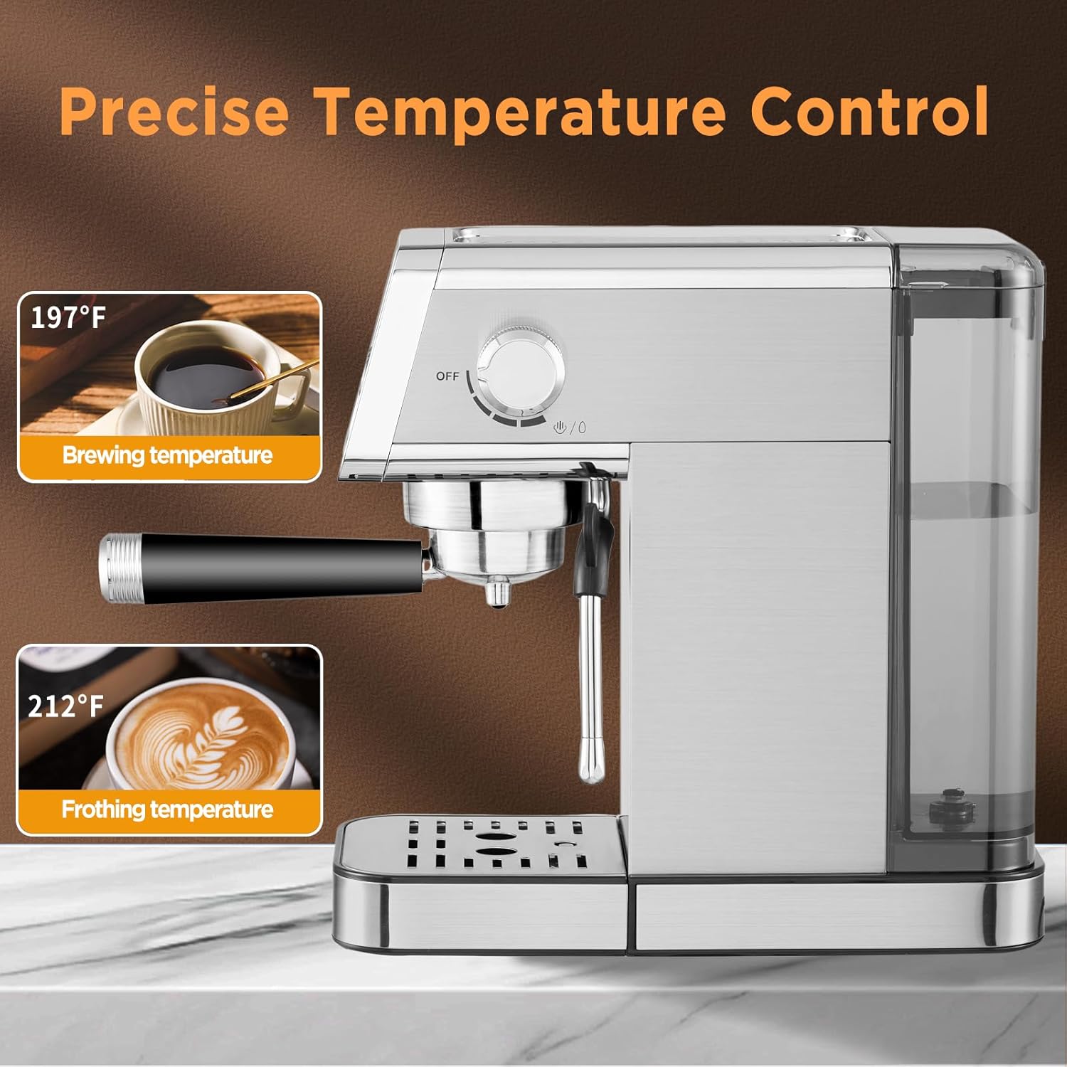 Espresso Machine,20 Bar Semi-Automatic Espresso Maker with Milk Frother,Compact Stainless Steel Coffee Machine with 40oz Removable Water Tank for Cappuccino,Latte, Americano,Sliver for Home